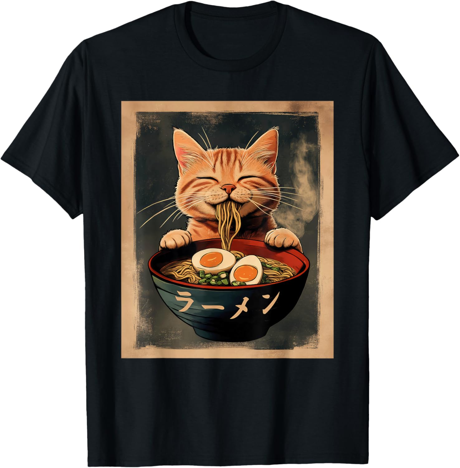 Funny Ginger Cat Ramen Japanese Graphic Tee Kawaii Anime T-Shirt