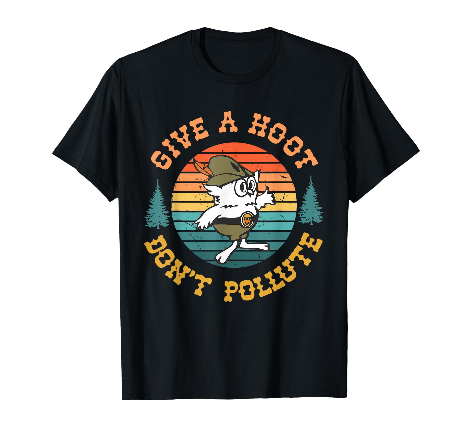 Give A Hoot Don't Pollute Funny T-Shirt, Small, Black