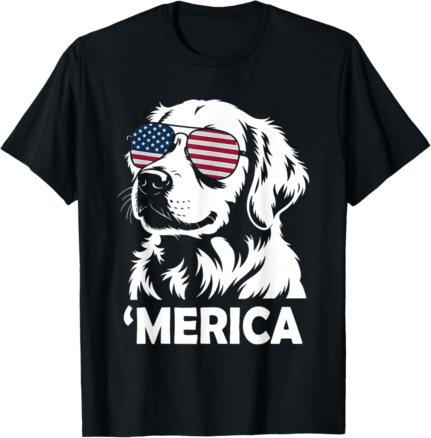 Golden Retriever 4th Of July Merica Vintage Retro T-Shirt