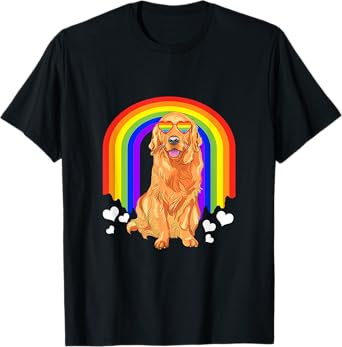 Golden Retriever Dog LGBT-Q Pride Gay Rainbow Flag T-Shirt