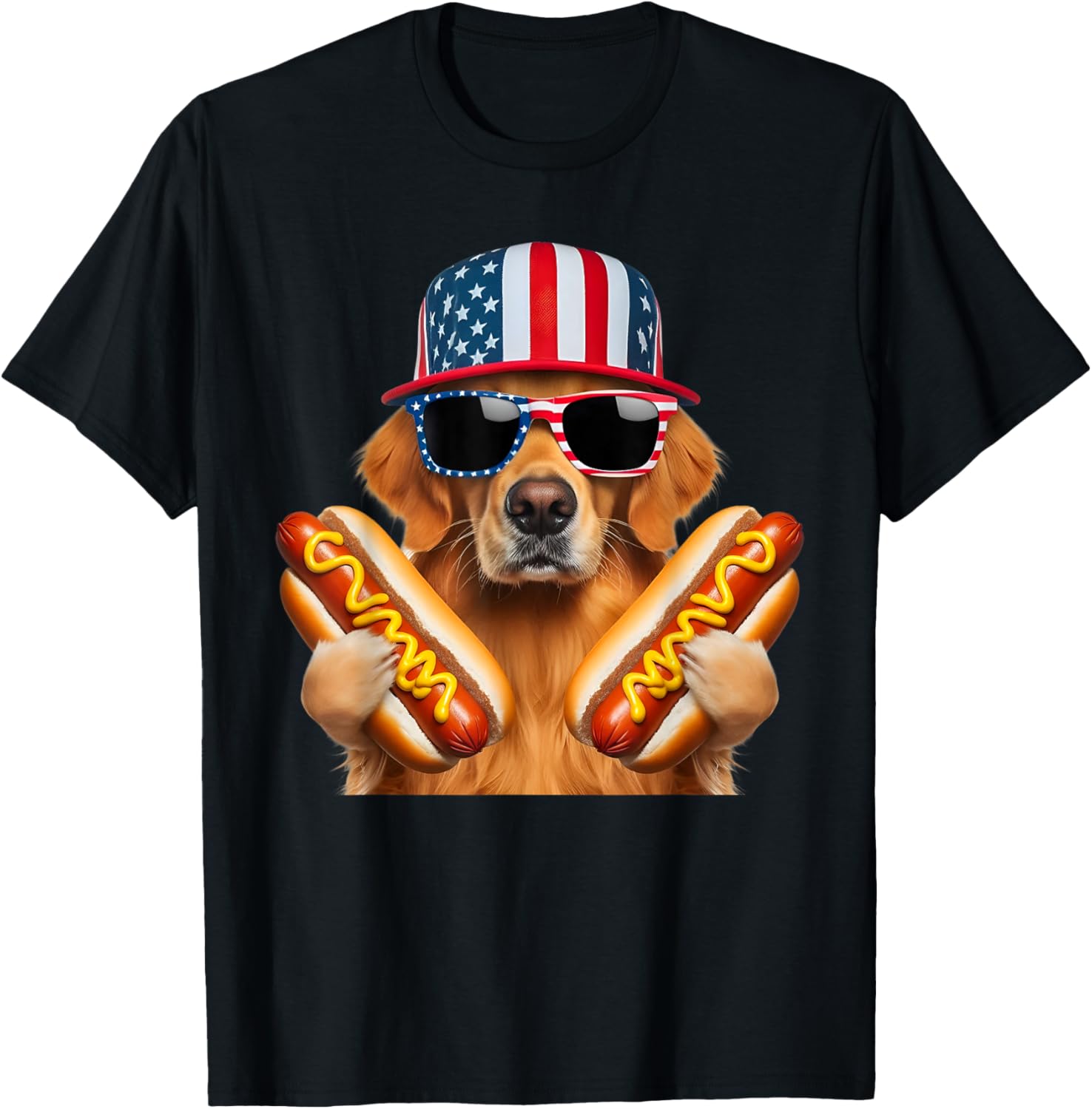 Golden Retriever Hotdog 4th of July American Flag Patriotic T-Shirt