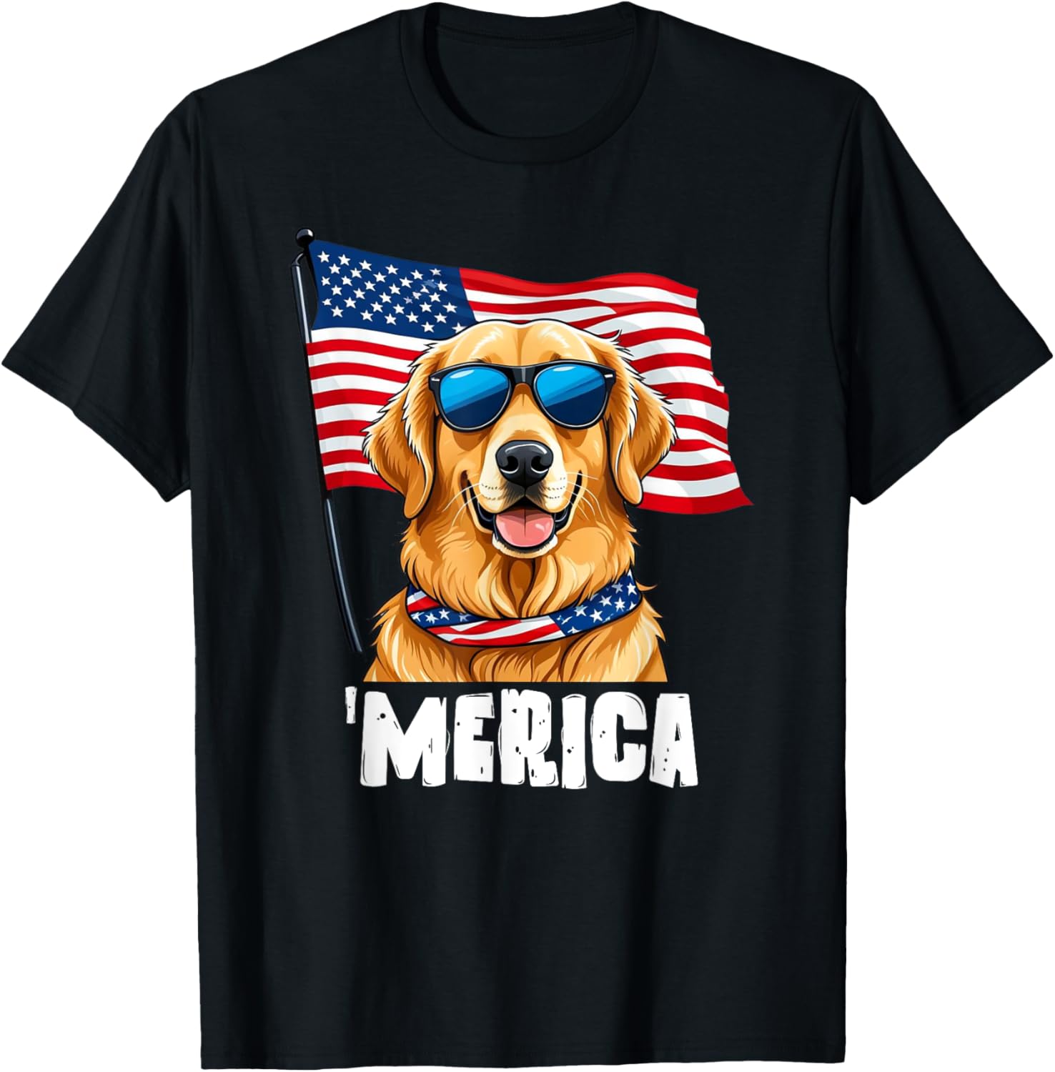 Golden Retriever Merica USA Flag Patriotic Dog T-Shirt