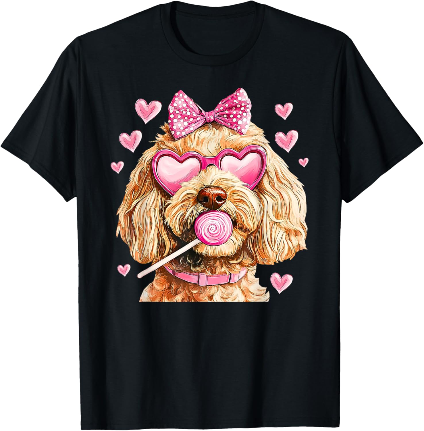 Cute Goldendoodle Wearing Glasses Heart Puppy Valentines Bow T-Shirt