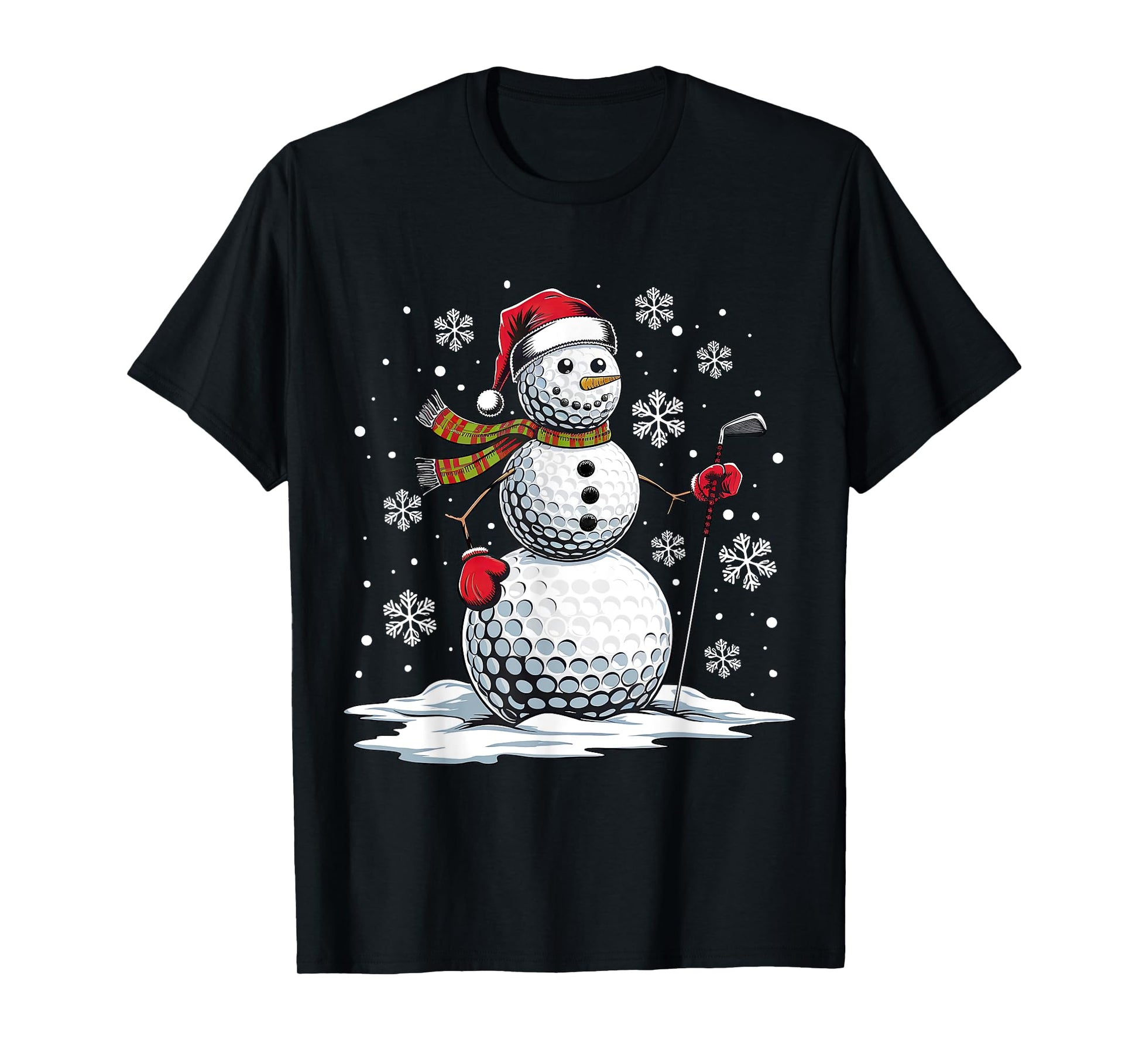 Golf Snowman Golf Player Santa Hat Christmas Funny T-Shirt