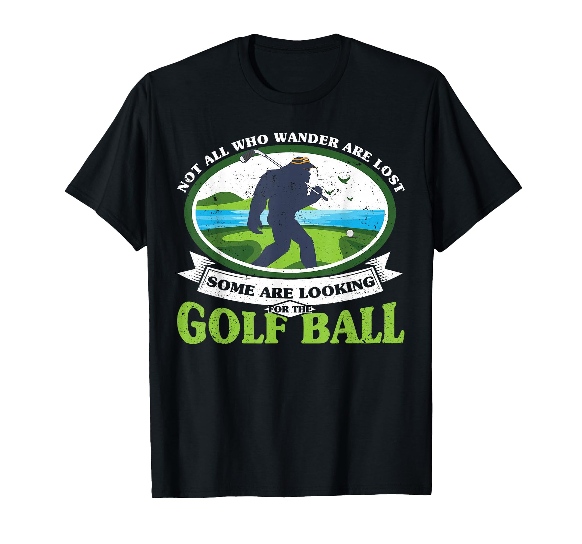 Golfing Bigfoot Not all Who Wander Are Lost Funny Golf Ball T-Shirt
