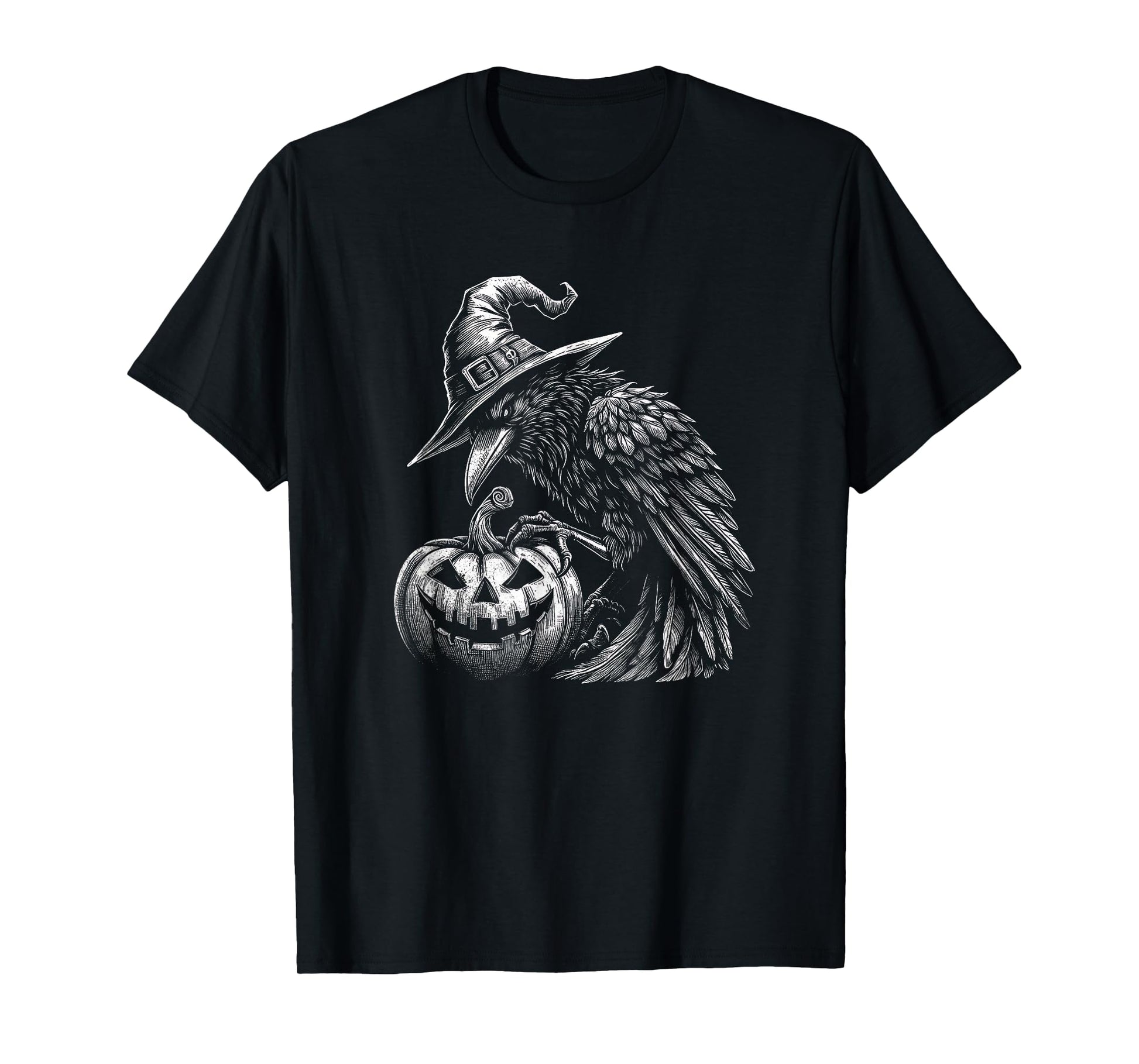 Goth Halloween Raven With Wizard Hat Art Crow Design T-Shirt