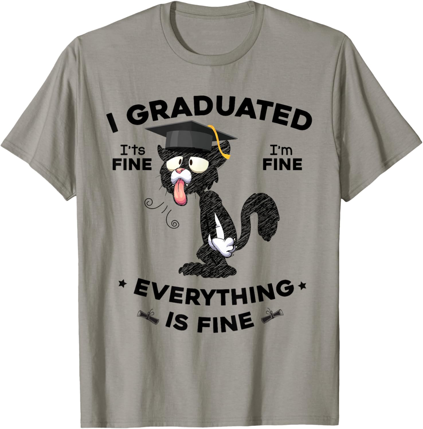 I Graduated Graduate Class 2025 Funny Black Cat Graduation T-Shirt