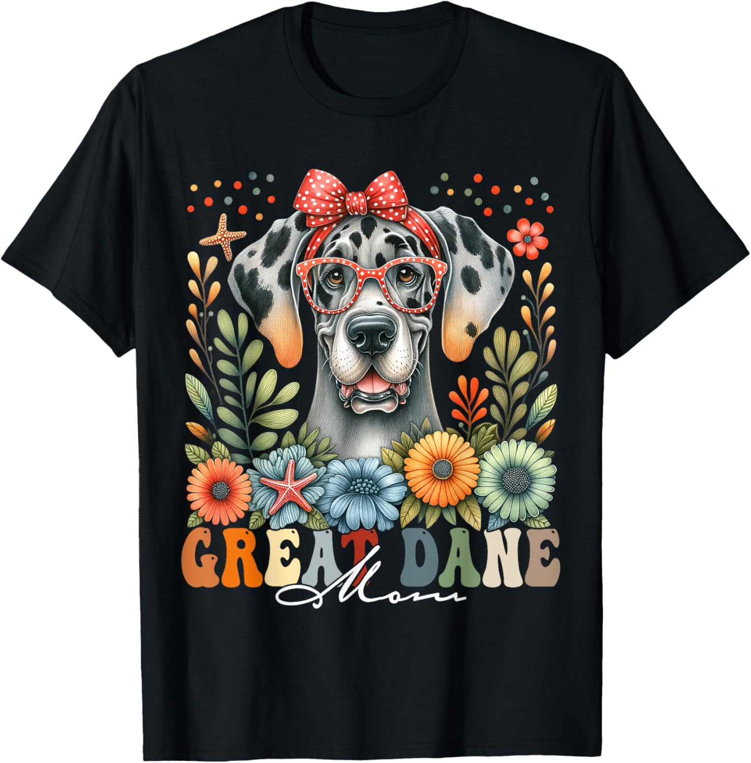 Great Dane Mom Dog Lover Mother's Day Retro Floral Women T-Shirt