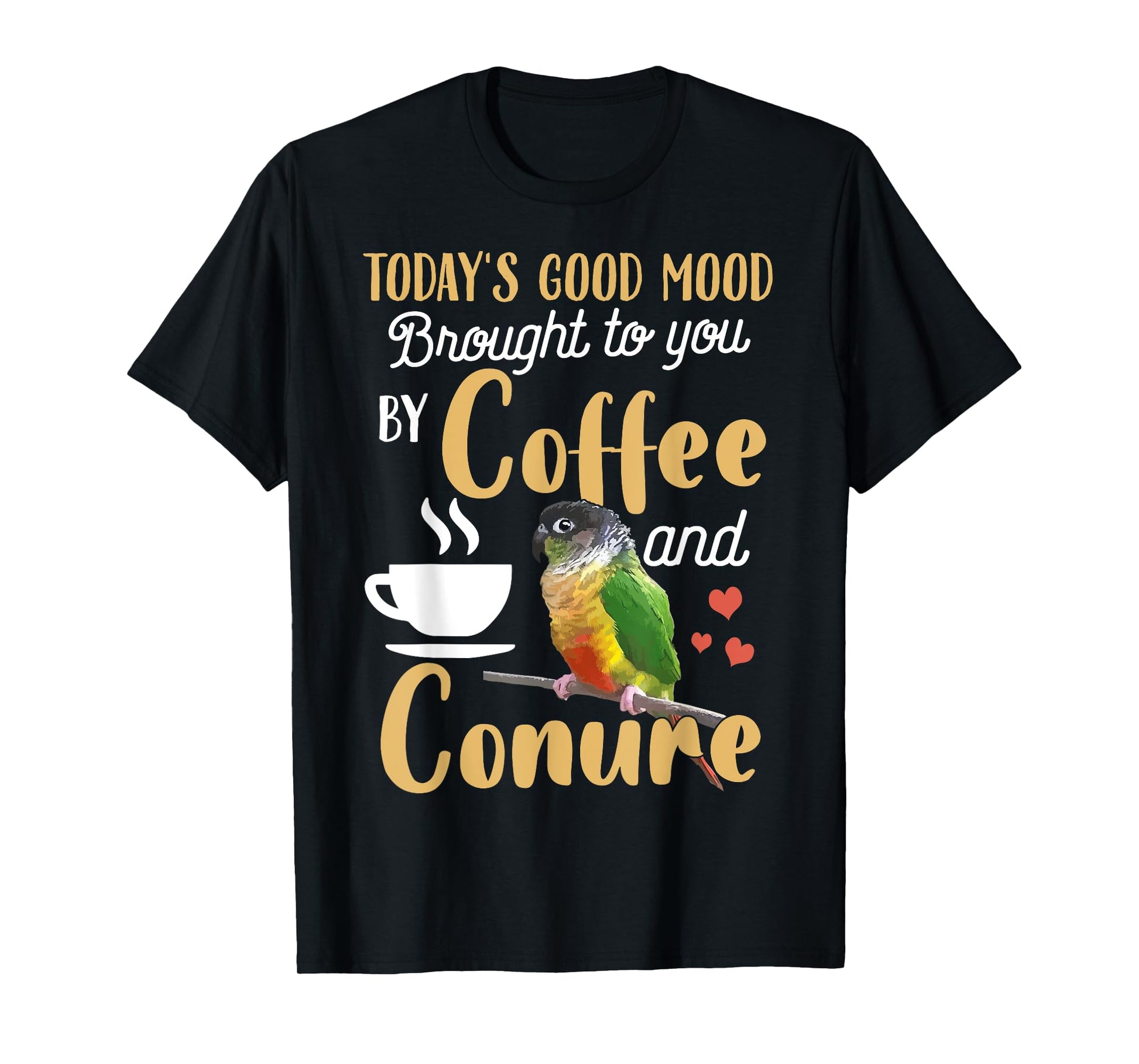 Green Cheek Conure Shirt - Good Coffee and Conure Parrot T-Shirt