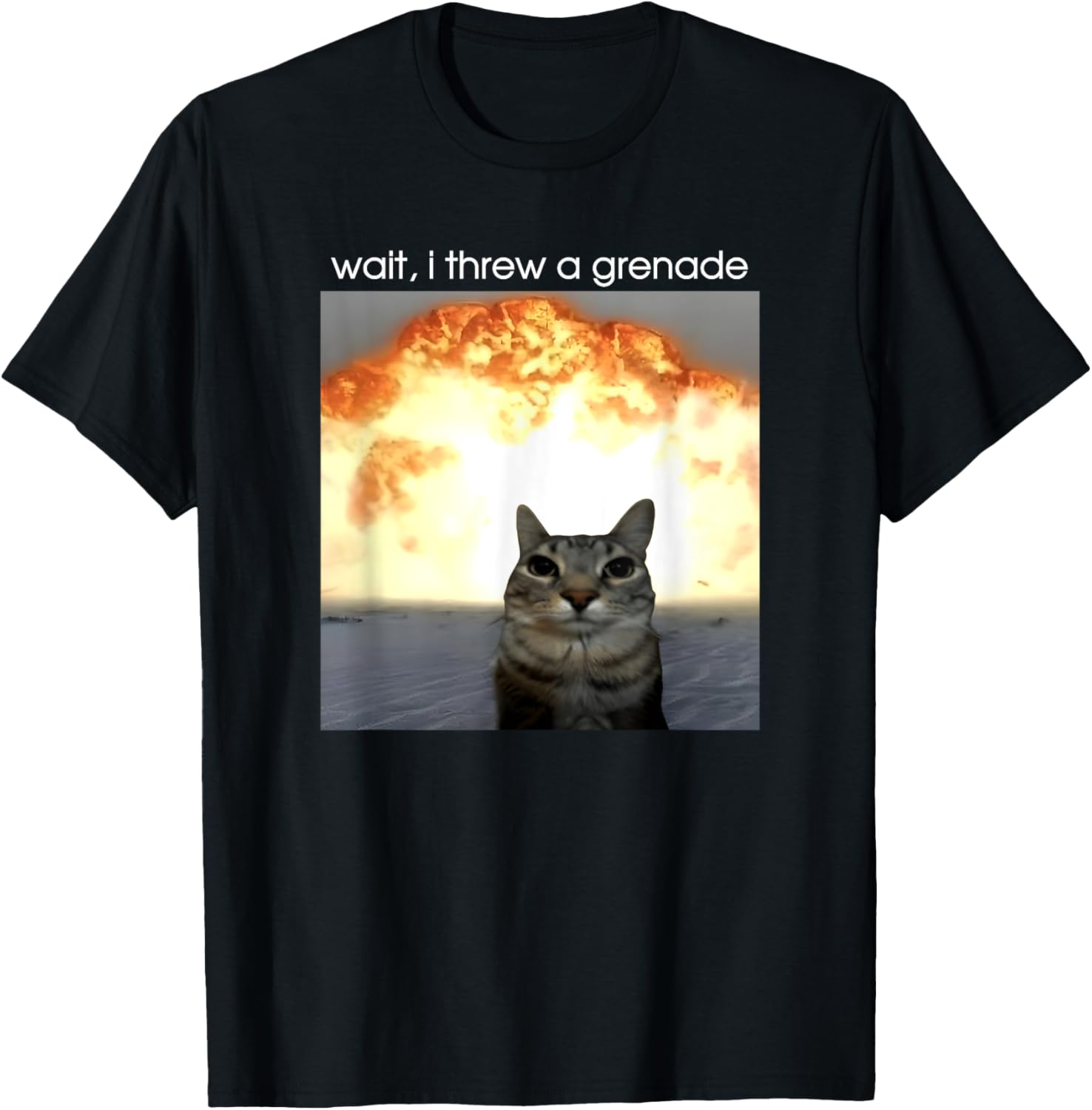 Wait, I Threw A Grenade Silly Staring Cat Meme T-Shirt