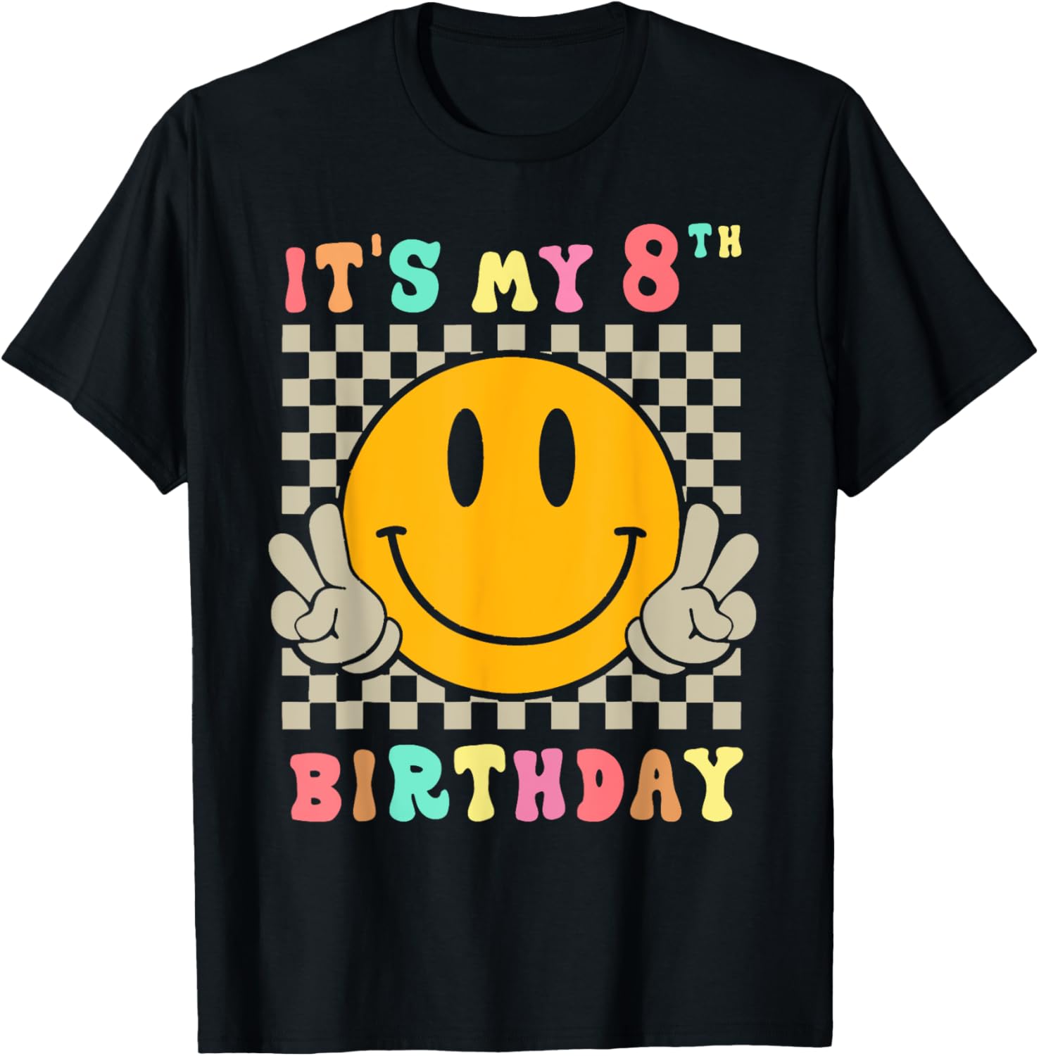 Groovy Hippie Smile Face It's My 8th Birthday Happy 8 Year T-Shirt