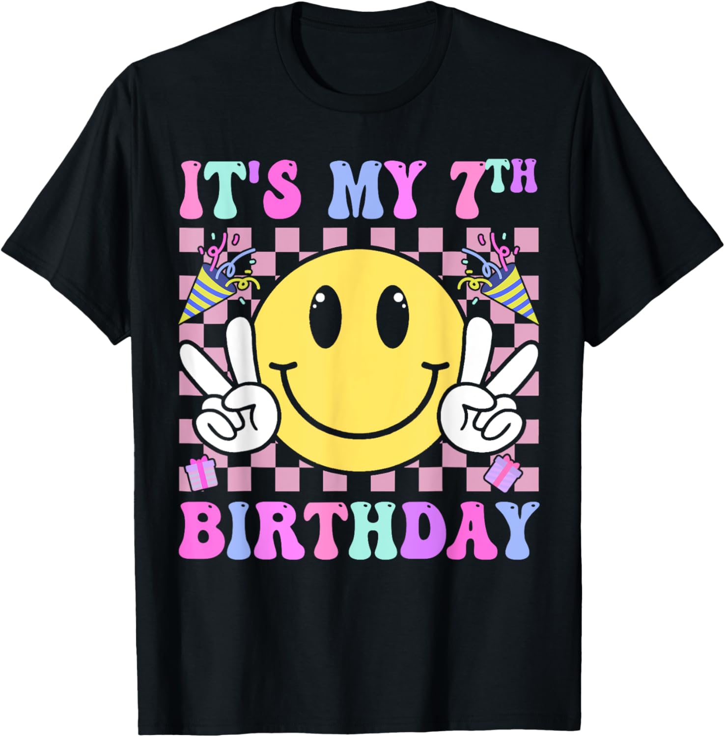 Groovy Smile Face It's My 7th Birthday Happy 7 Year T-Shirt