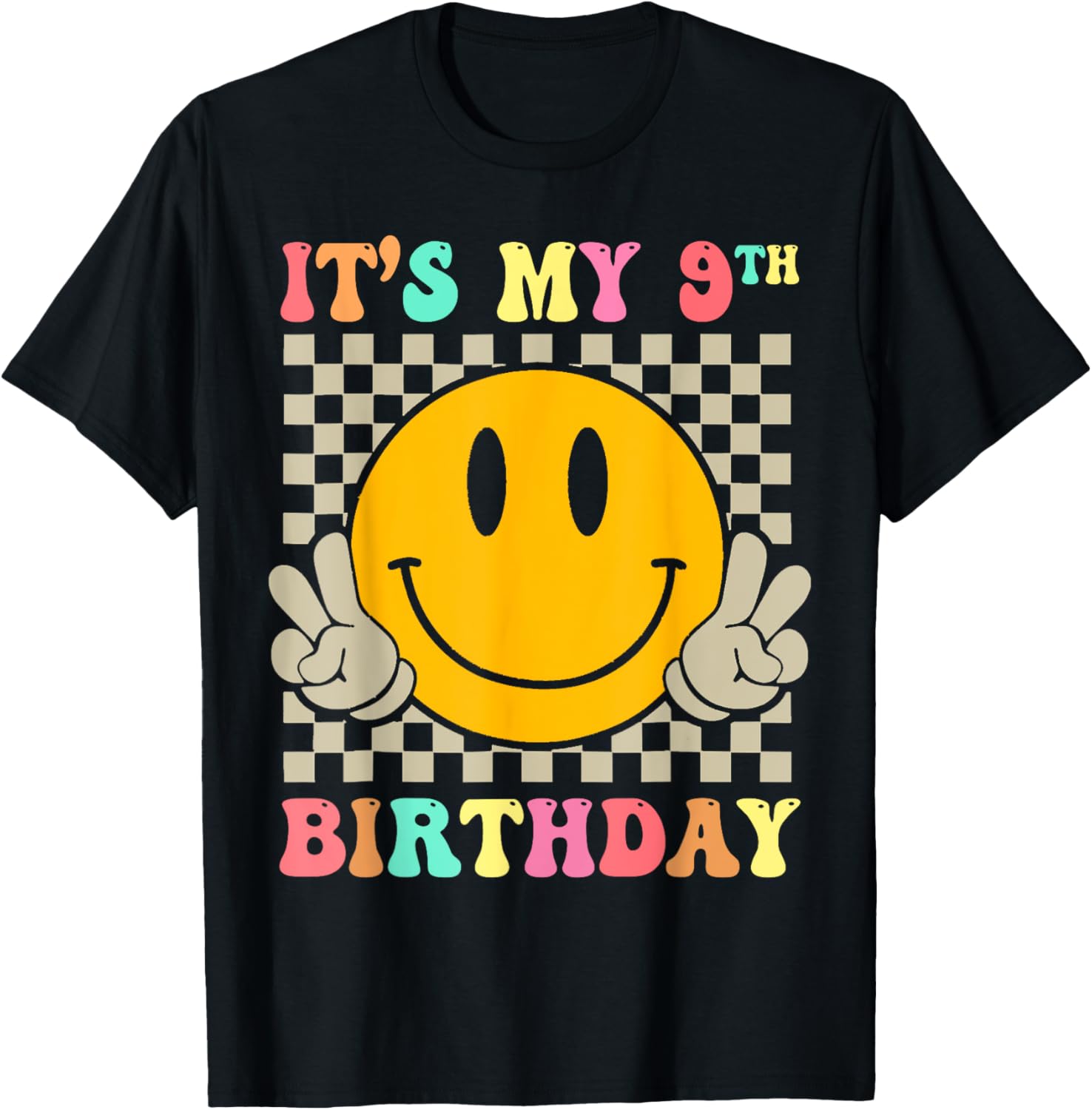 Groovy Smile Face It's My 9th Birthday Happy 9 Year T-Shirt