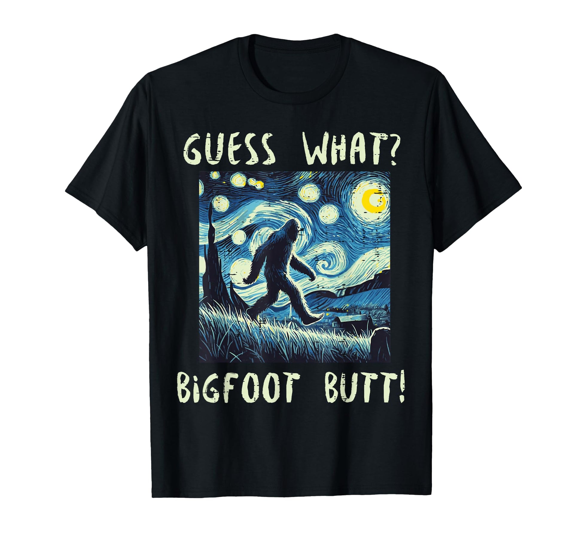 Guess What Bigfoot Starry Night Fun Sasquatch Art Women Men T-Shirt