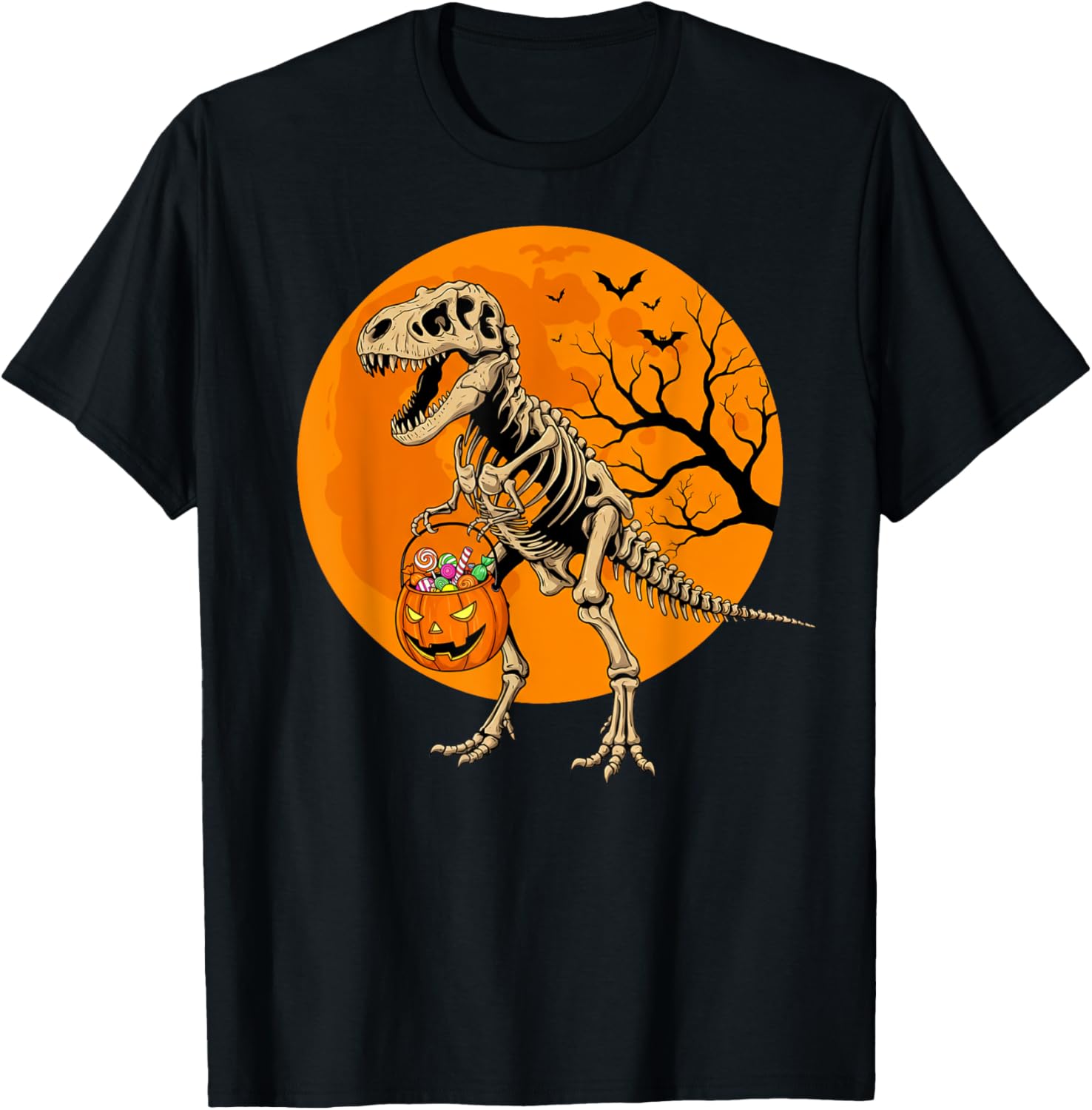 Halloween Boys Dinosaur Skeleton T-rex Scary Pumpkin Moon T-Shirt