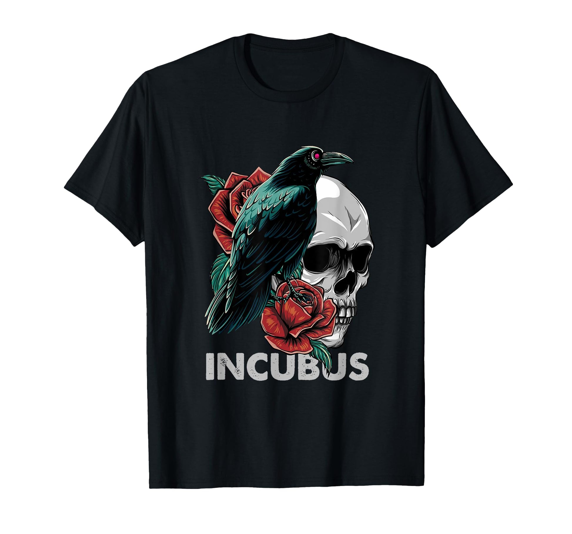Halloween Graphic Incubus-Crow Left Skull Morning And Flower T-Shirt