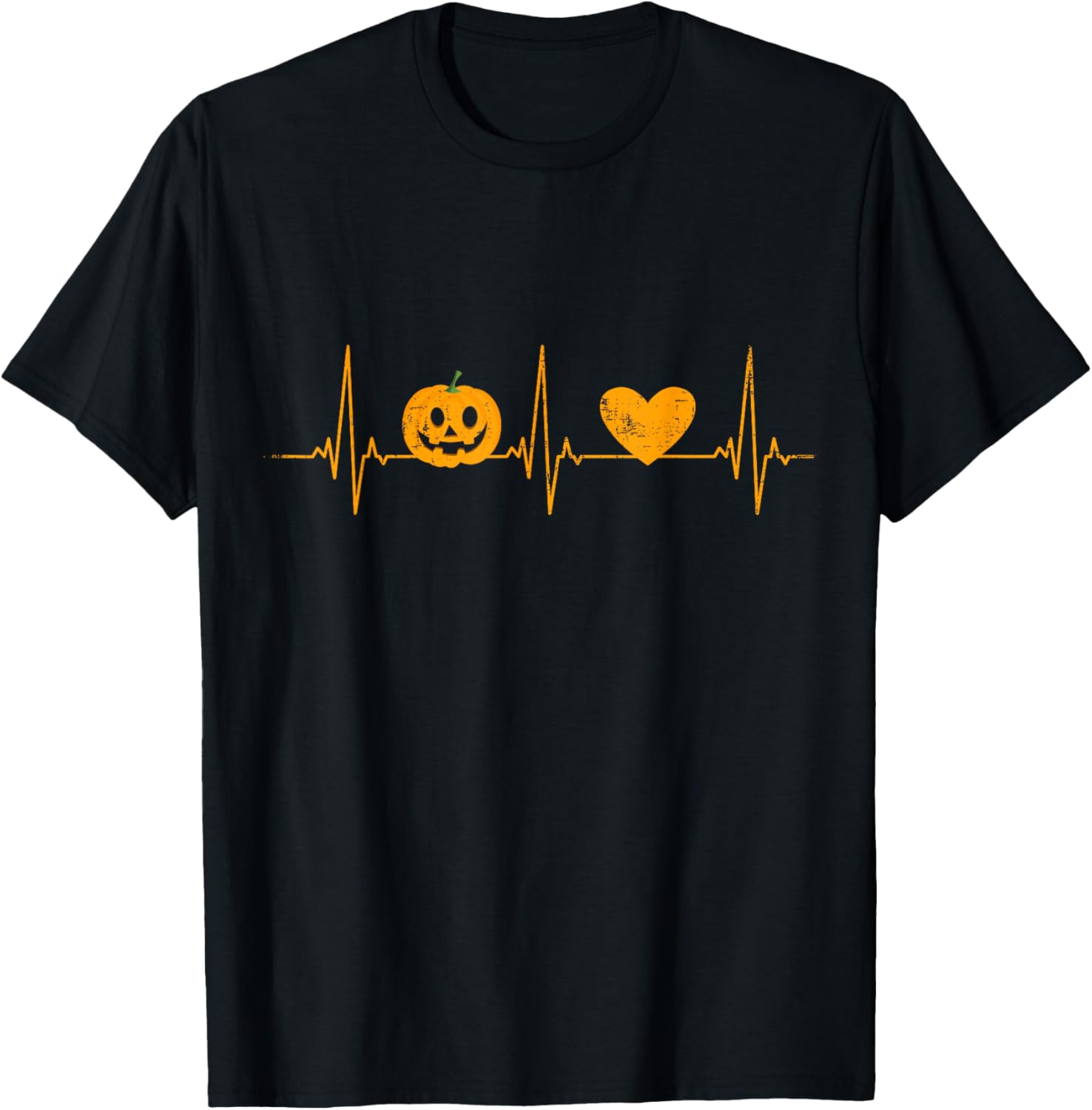 Halloween love heartbeat frequency with pulse pumpkin heart T-Shirt