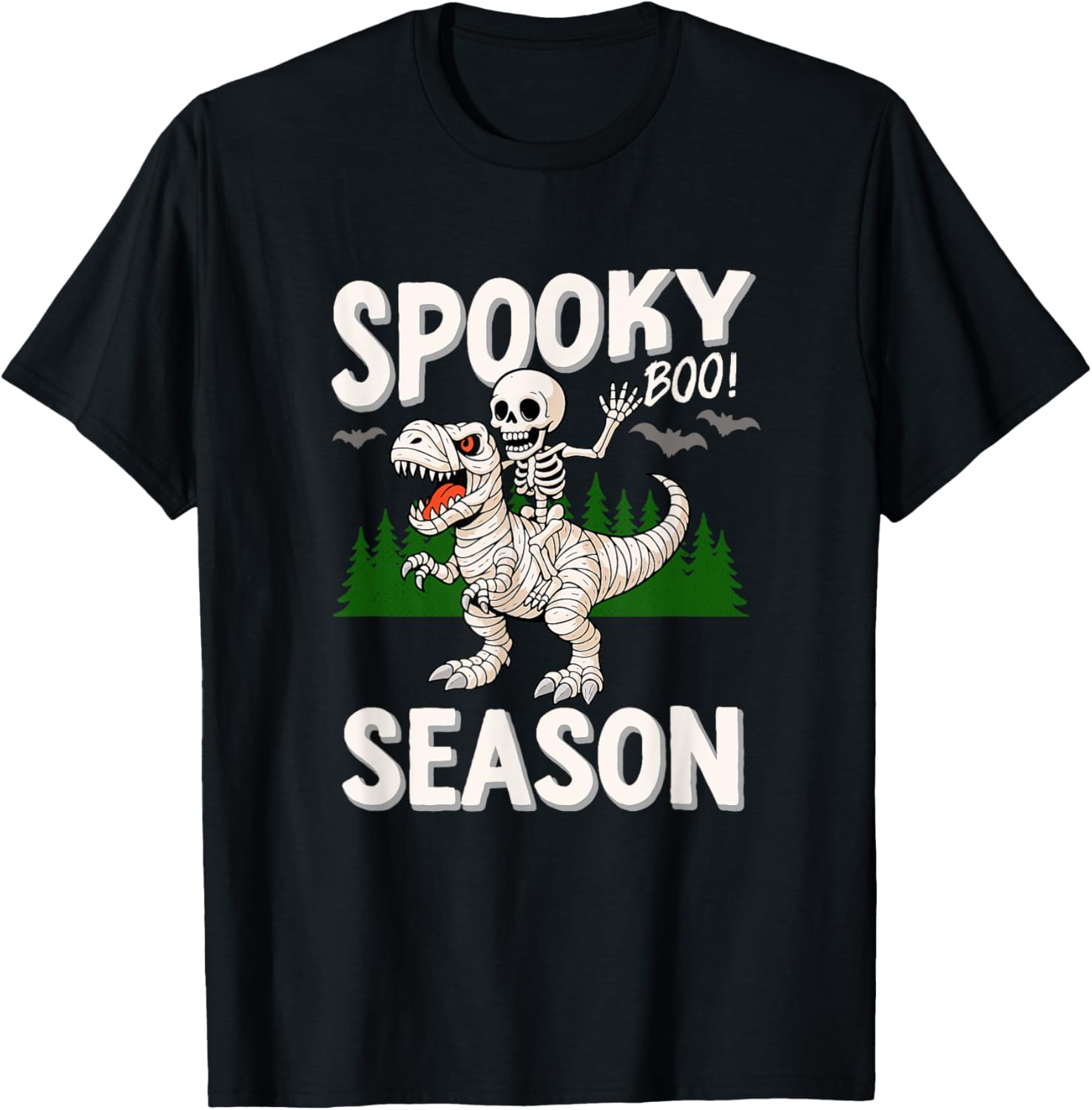 Halloween Mummy Dinosaur Skeleton Spooky Season T-Shirt