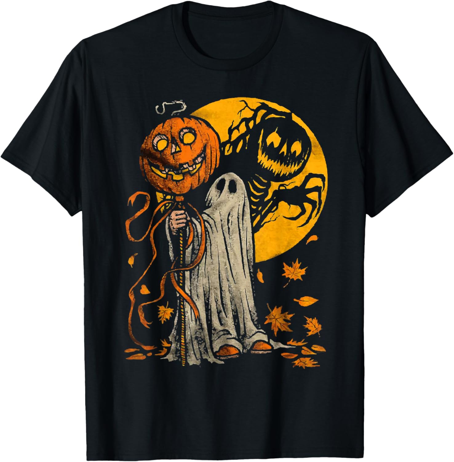 Halloween Pumpkin Ghost Autumn Leaves Graphic Art T-Shirt