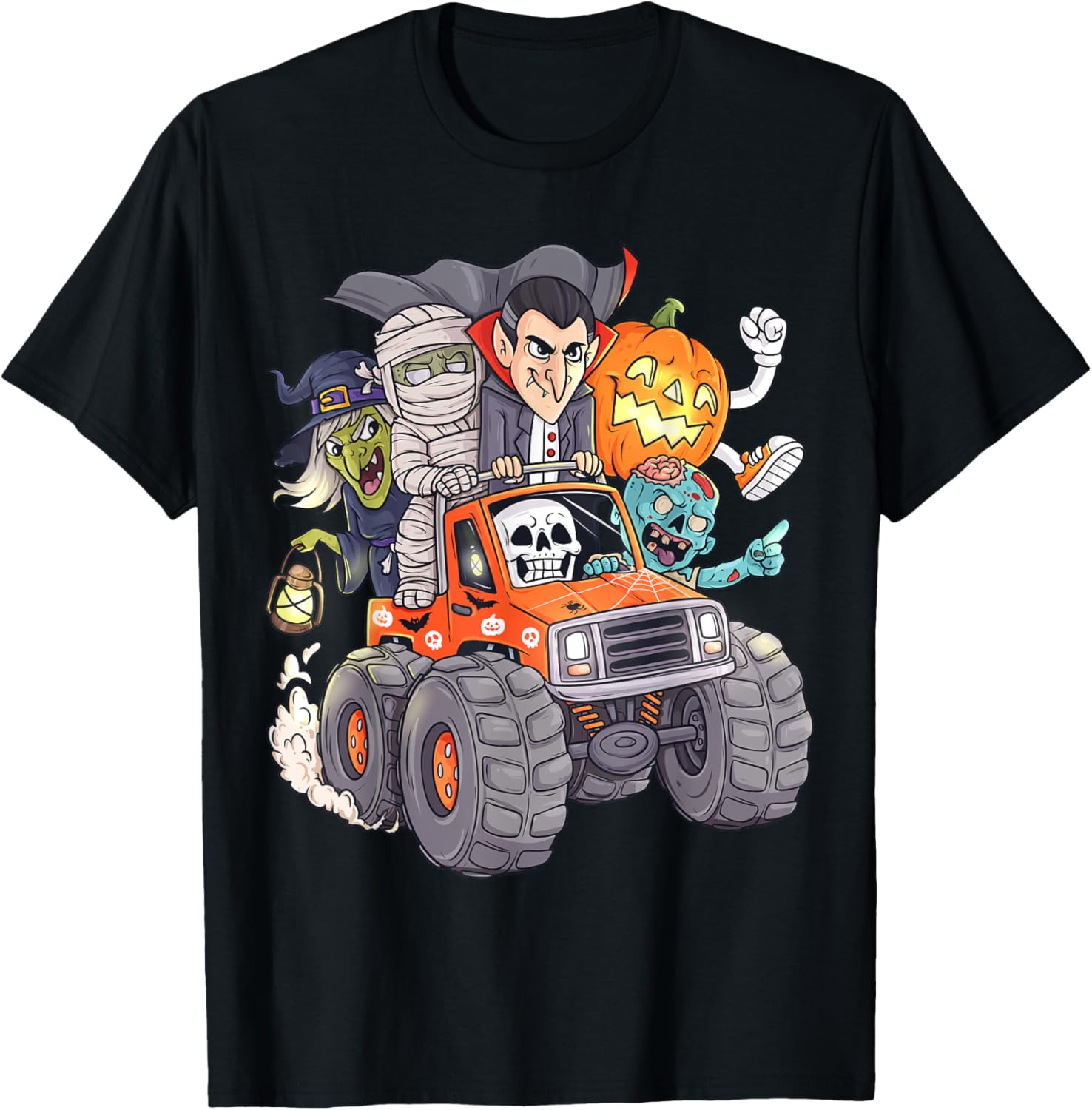 Halloween Skeleton Zombie Monster Truck Vampire Boys Kids T-Shirt