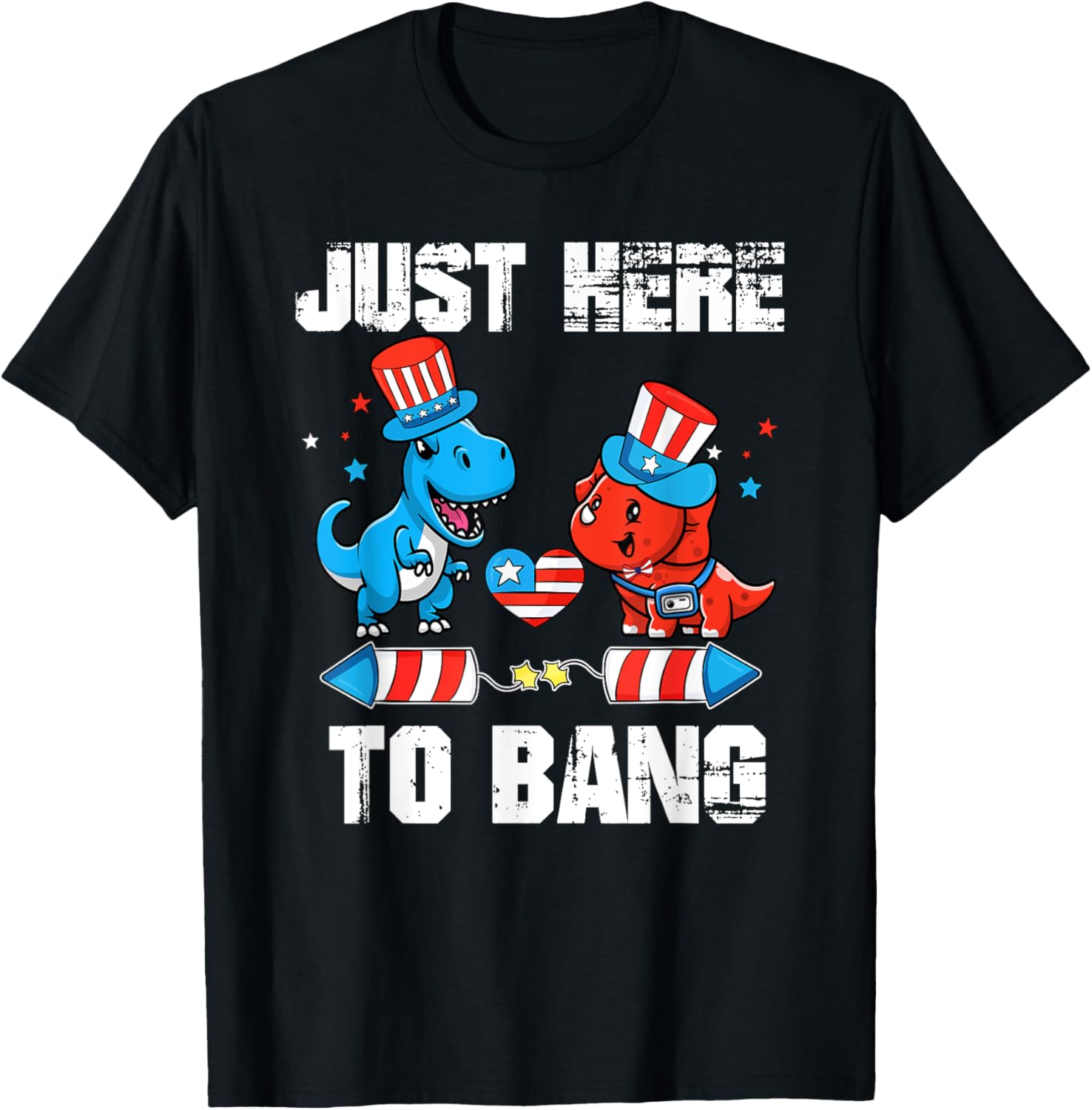 Happy 4th Of July Dinos Boys Just Here To Bang Toddler Kids T-Shirt
