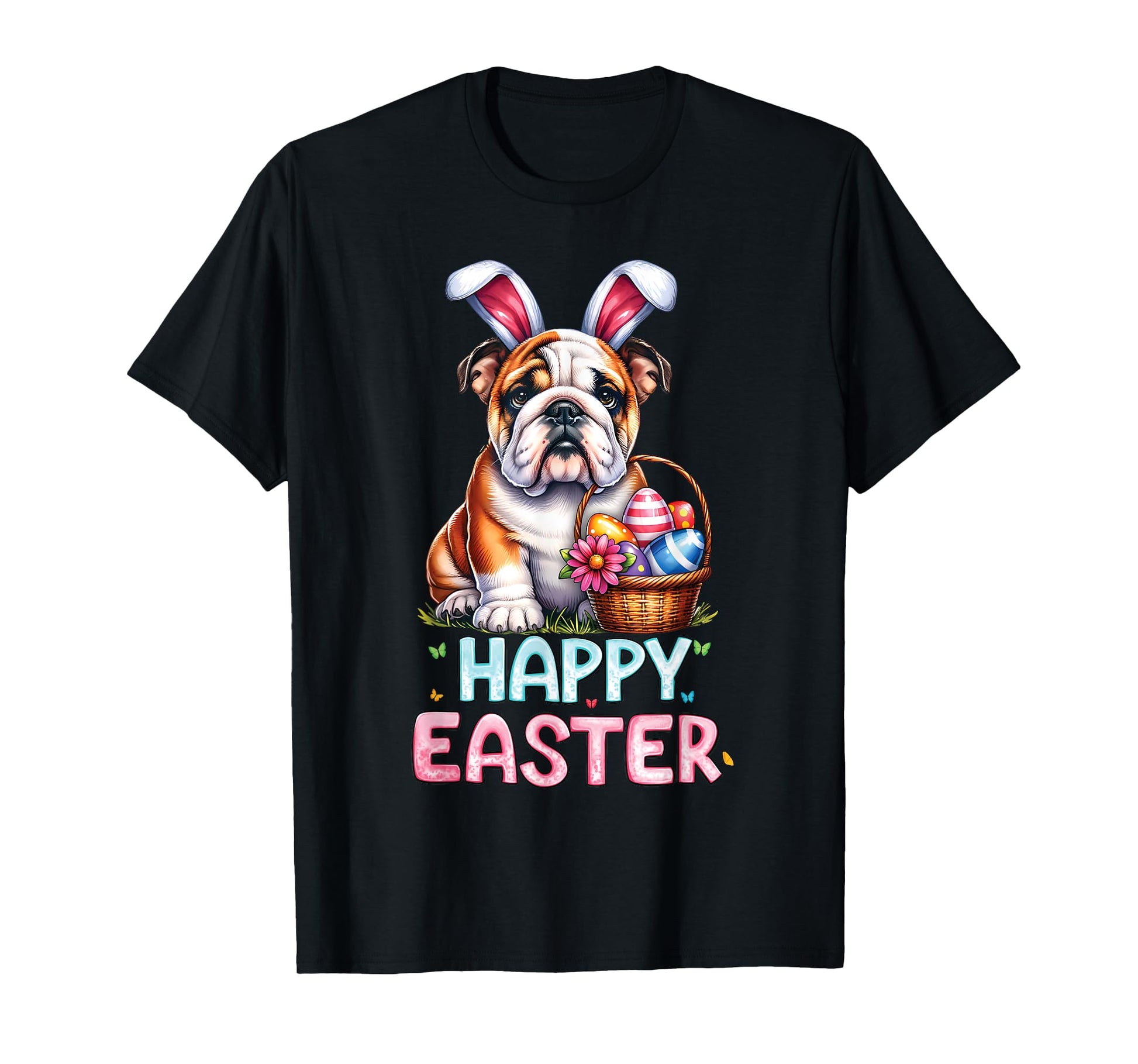 Happy Easter Day English Bulldog Cute Easter Bunny Women Kid T-Shirt