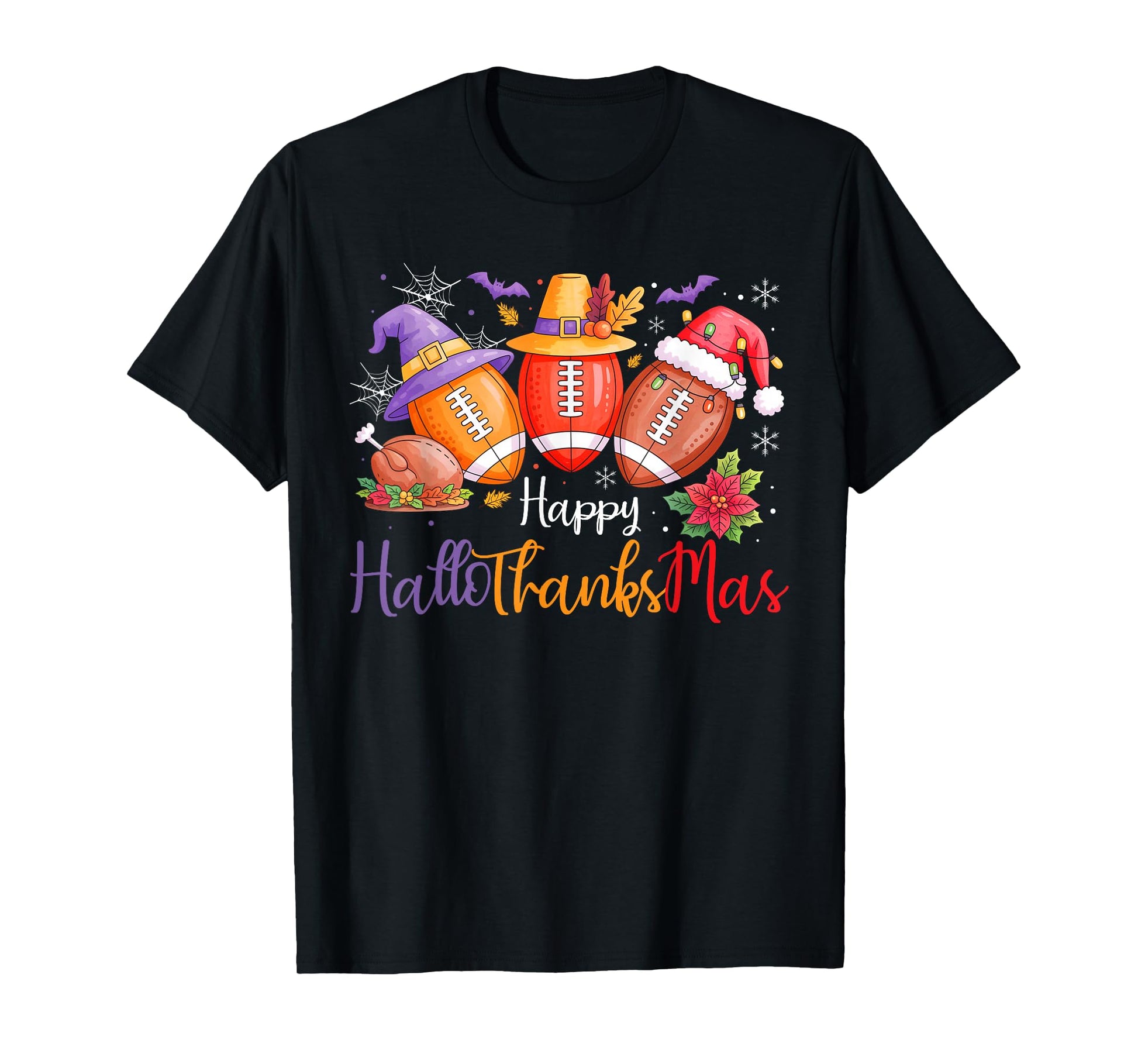 Happy Hallothanksmas Football Halloween Thanksgiving Xmas T-Shirt
