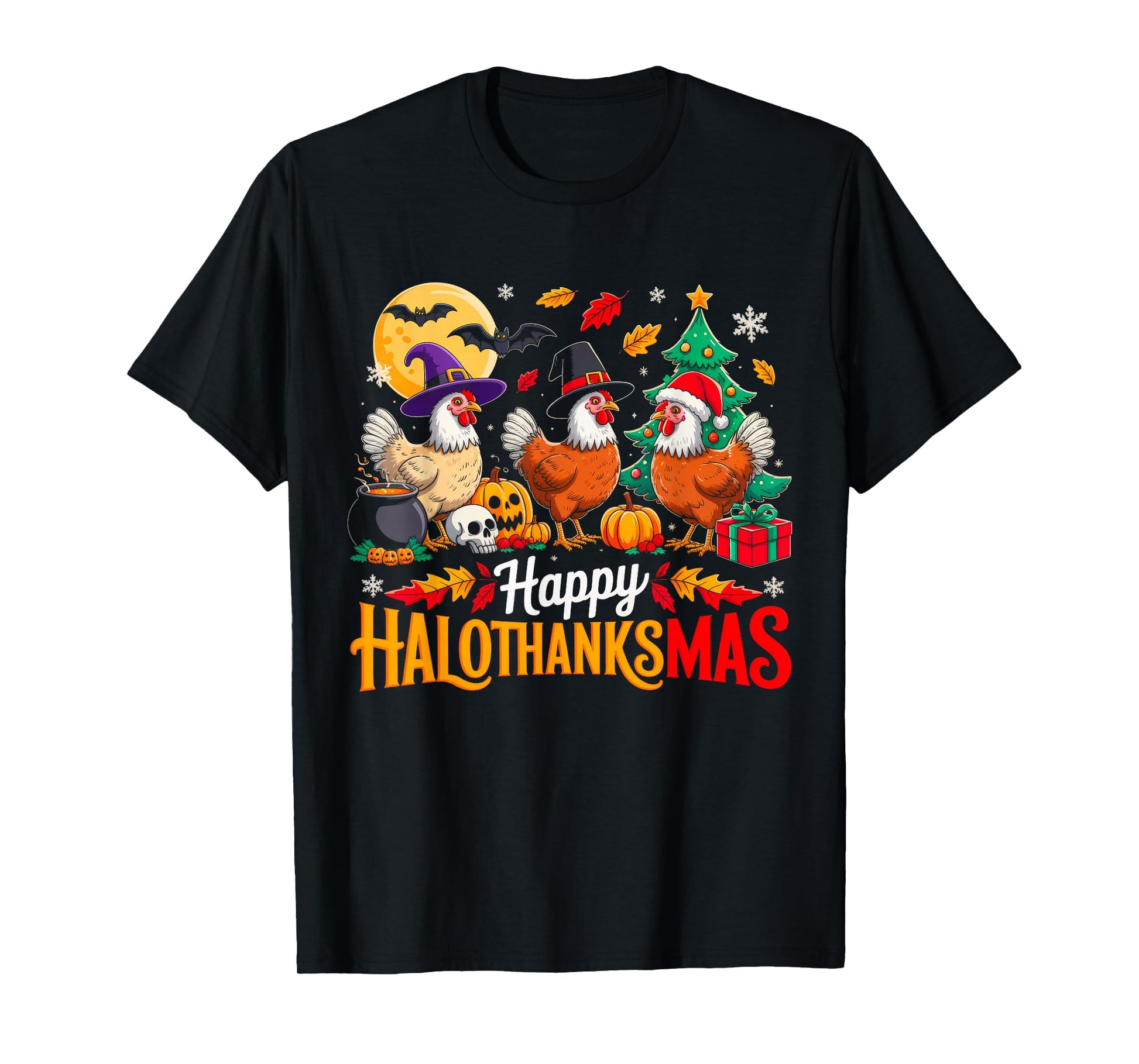 Happy HalloThanksMas Funny Chicken Animal Lovers Farmer T-Shirt