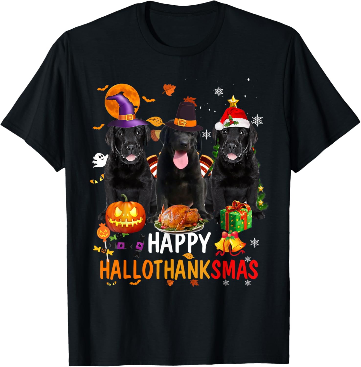 Happy Hallothanksmas Funny Black Lab Halloween Thanks Xmas T-Shirt