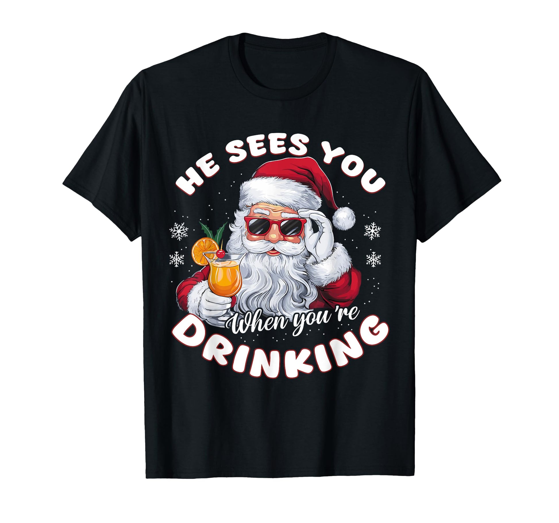 He Sees When You're Drinking Xmas Santa Drinking Cocktail T-Shirt