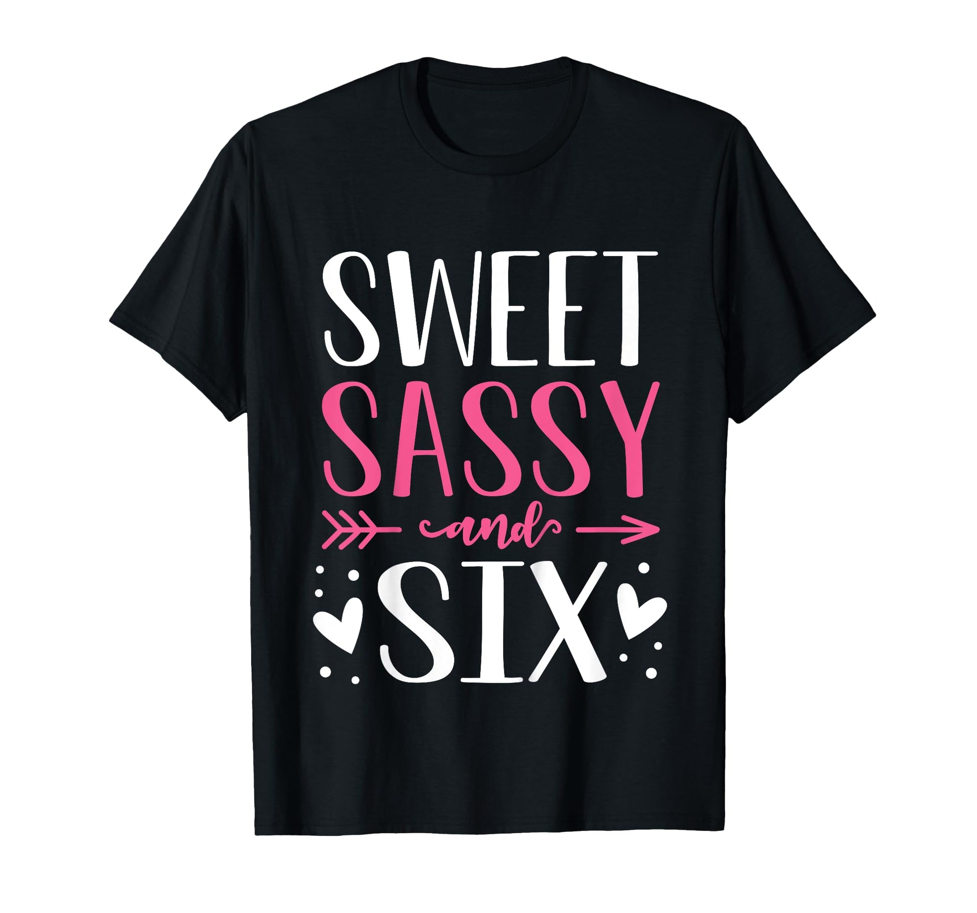 Hearts Sweet Sassy and Six 6 Years Old 6th Birthday Girls T-Shirt