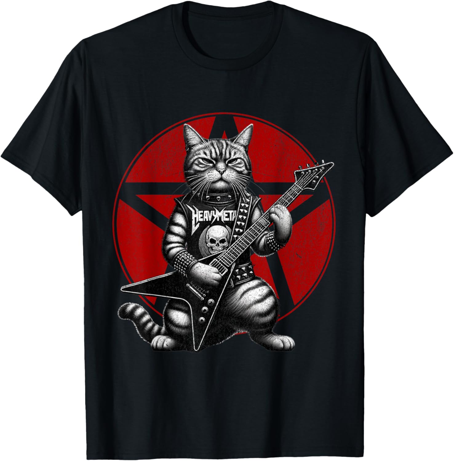 Heavy Metal Cats and Death Metal Music Metalhead Rock Guitar T-Shirt