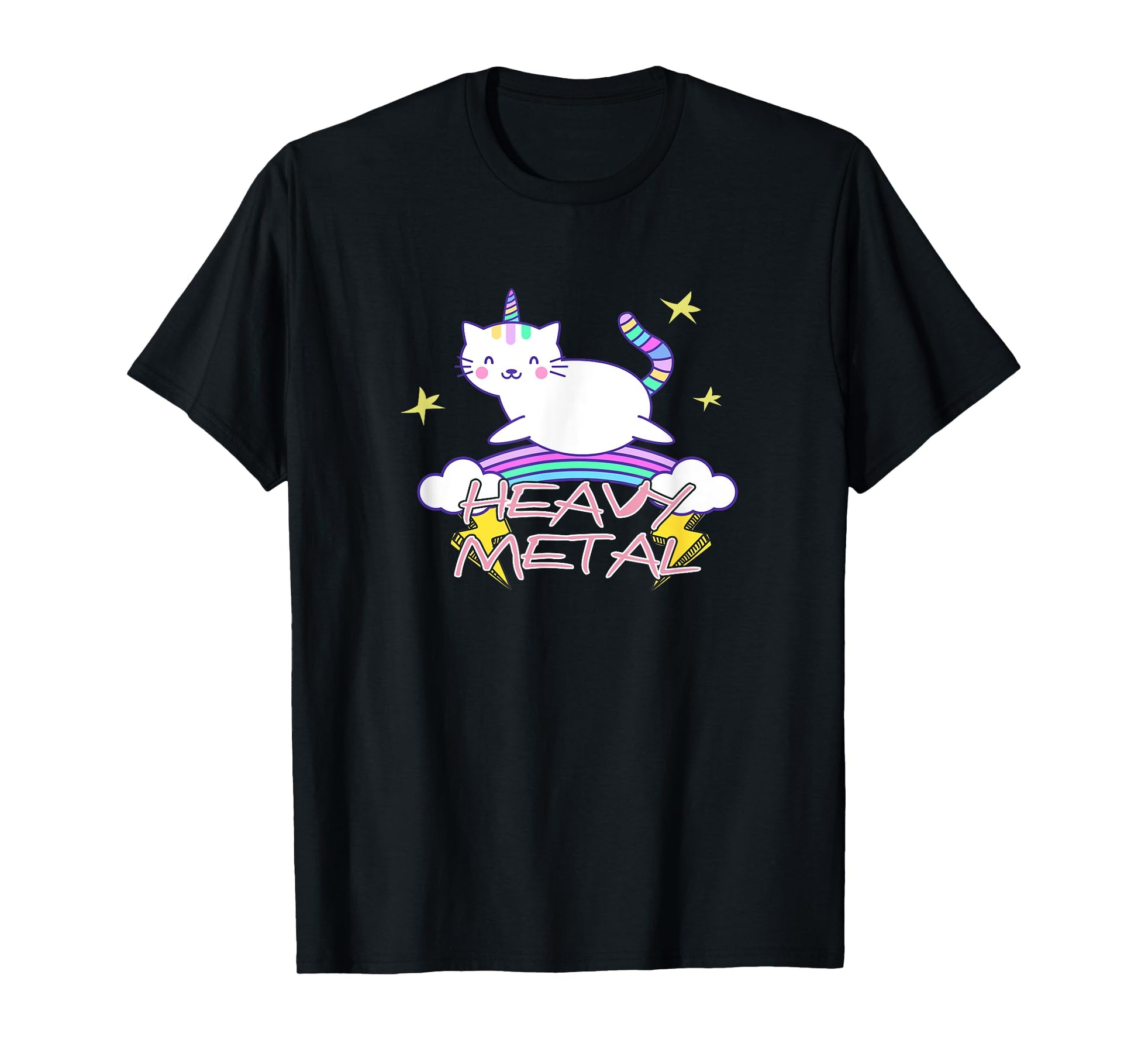 Heavy Metal Kawaii Unicorn Cat and Rainbow T-Shirt