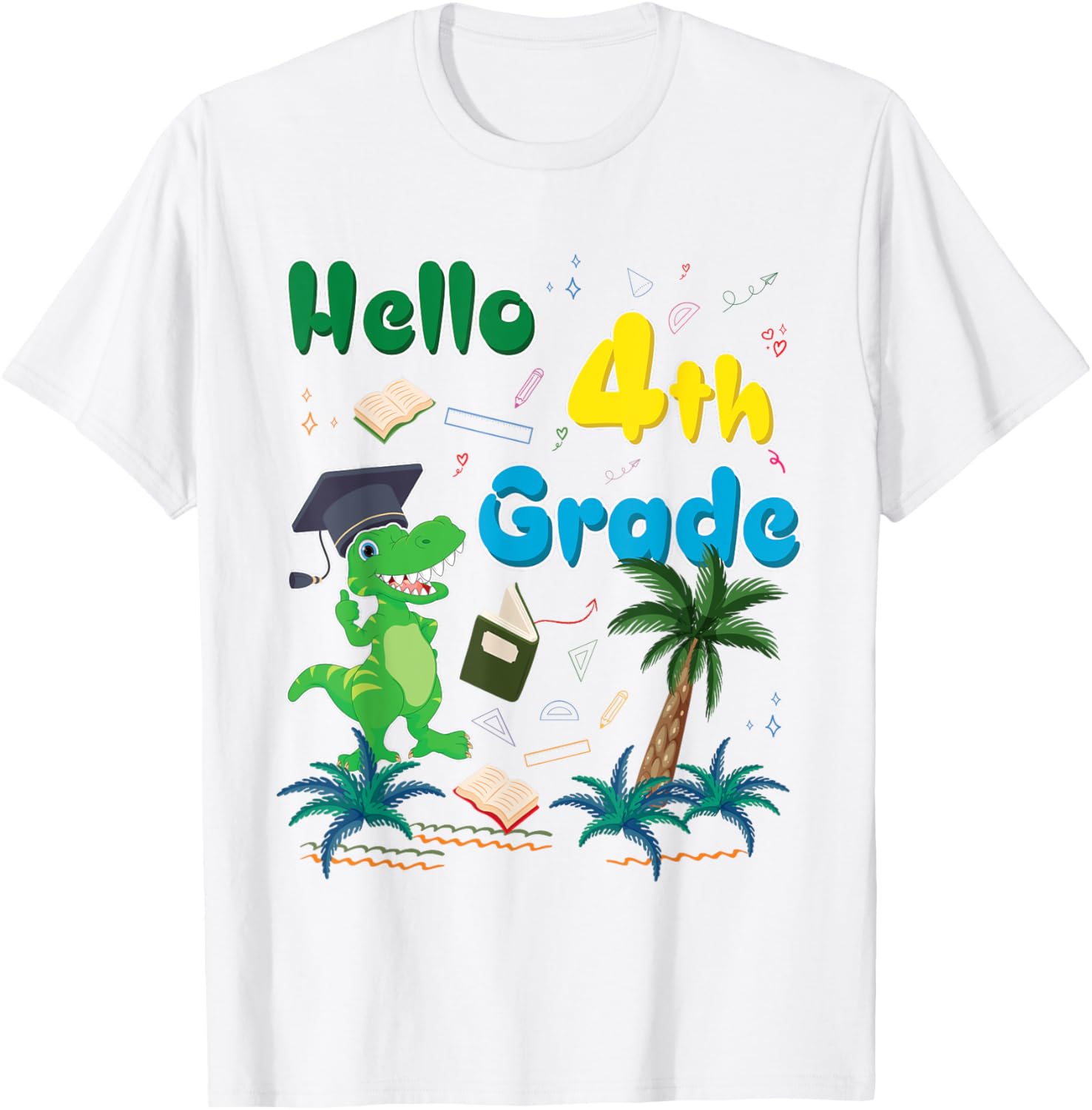 Hello Fourth Grade 4th Grade Dinosaur Teacher Kids T-Shirt