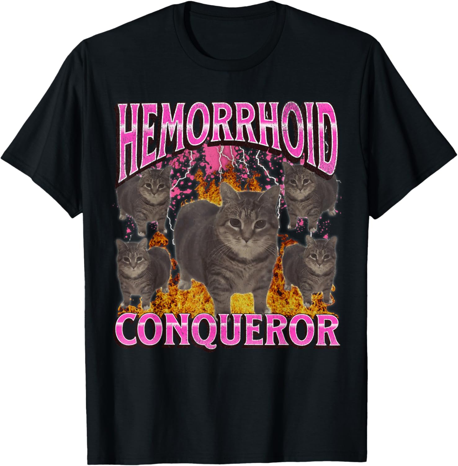 Hemorrhoid Conqueror Funny Cat Meme Bootleg Graphic T-Shirt