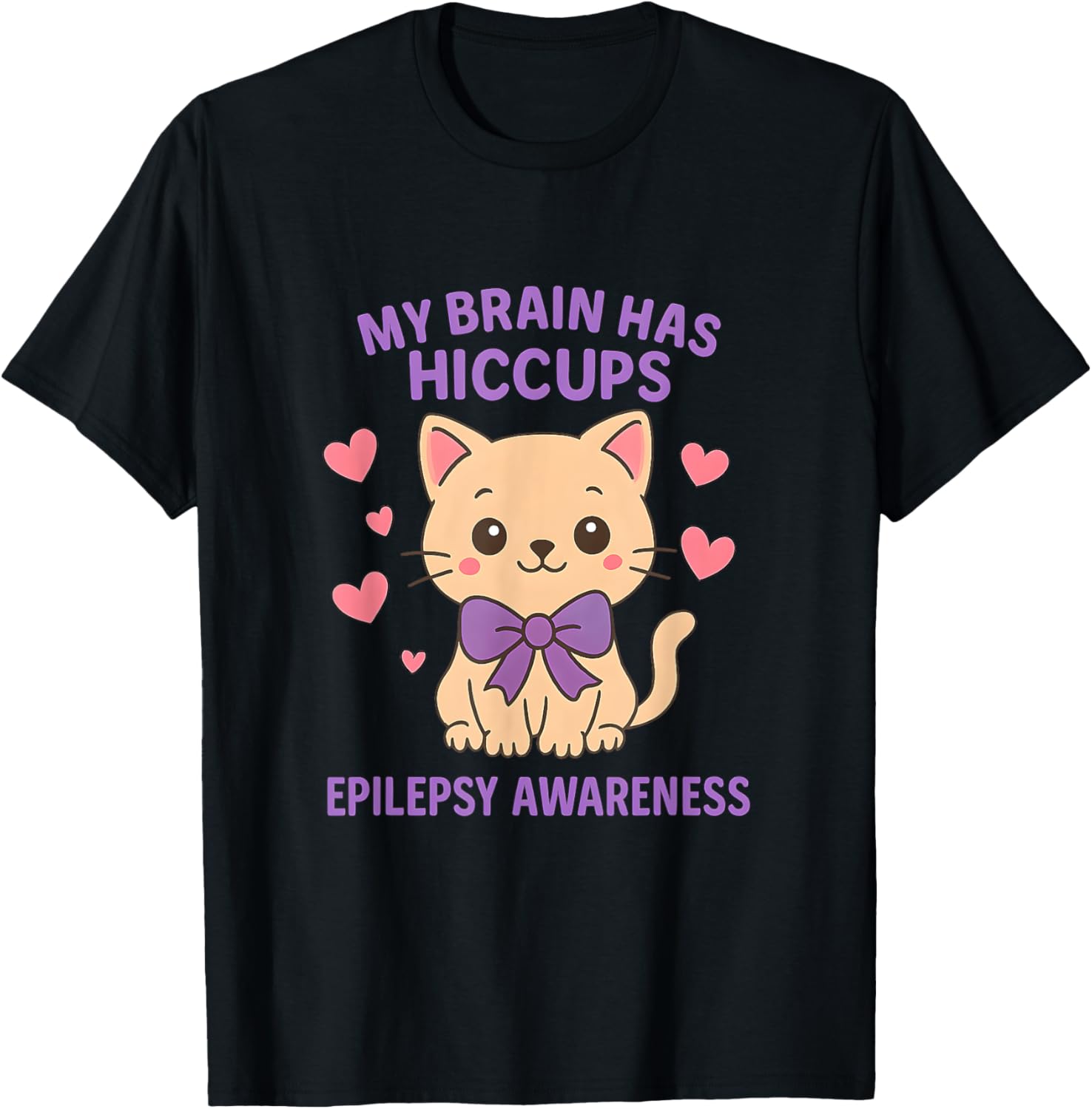 My Brain Has Hiccups Epilepsy Awareness Cat T-Shirt