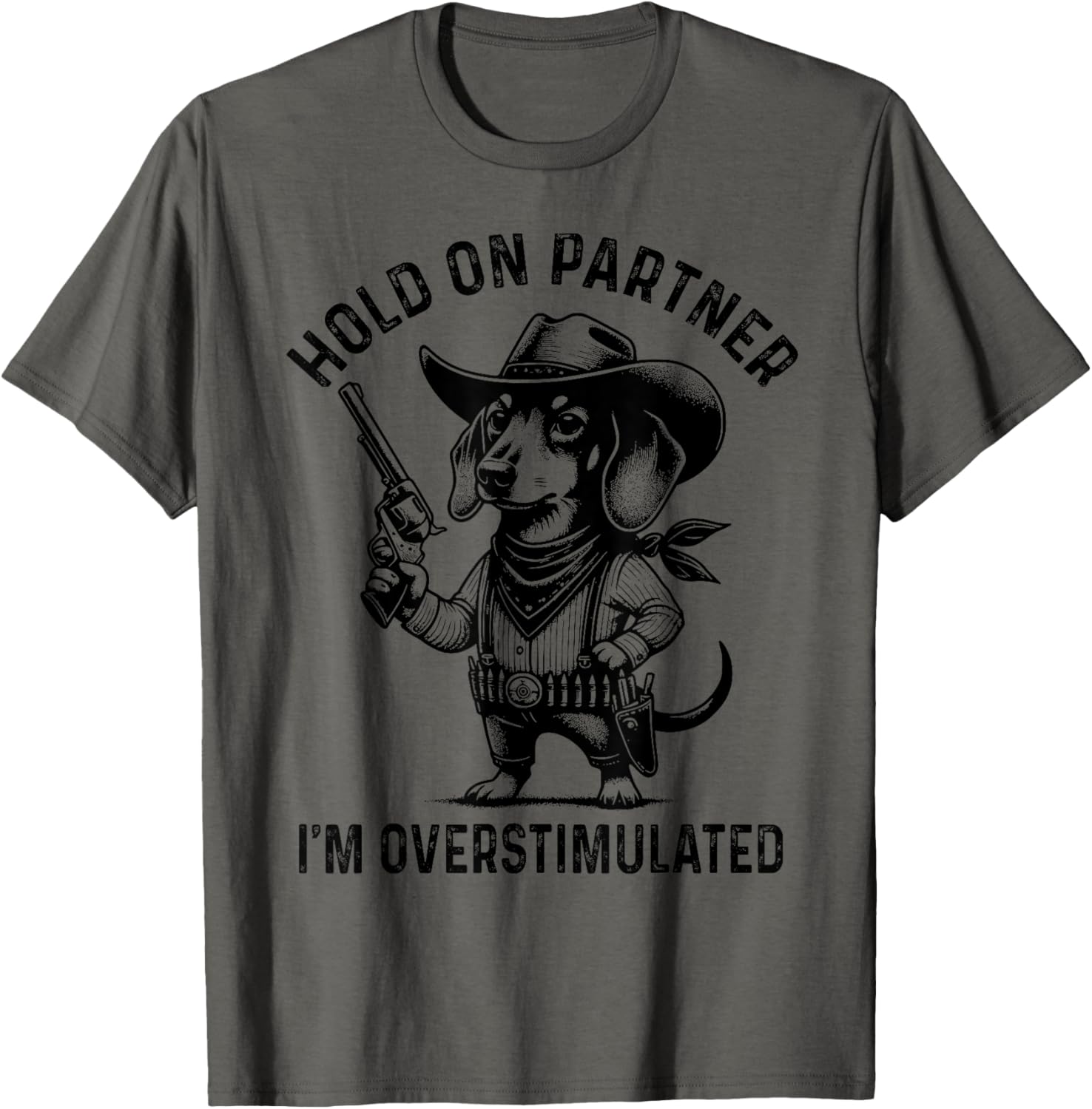 Hold On Partner I'm Overstimulated Cowboy Dachshund Dog T-Shirt