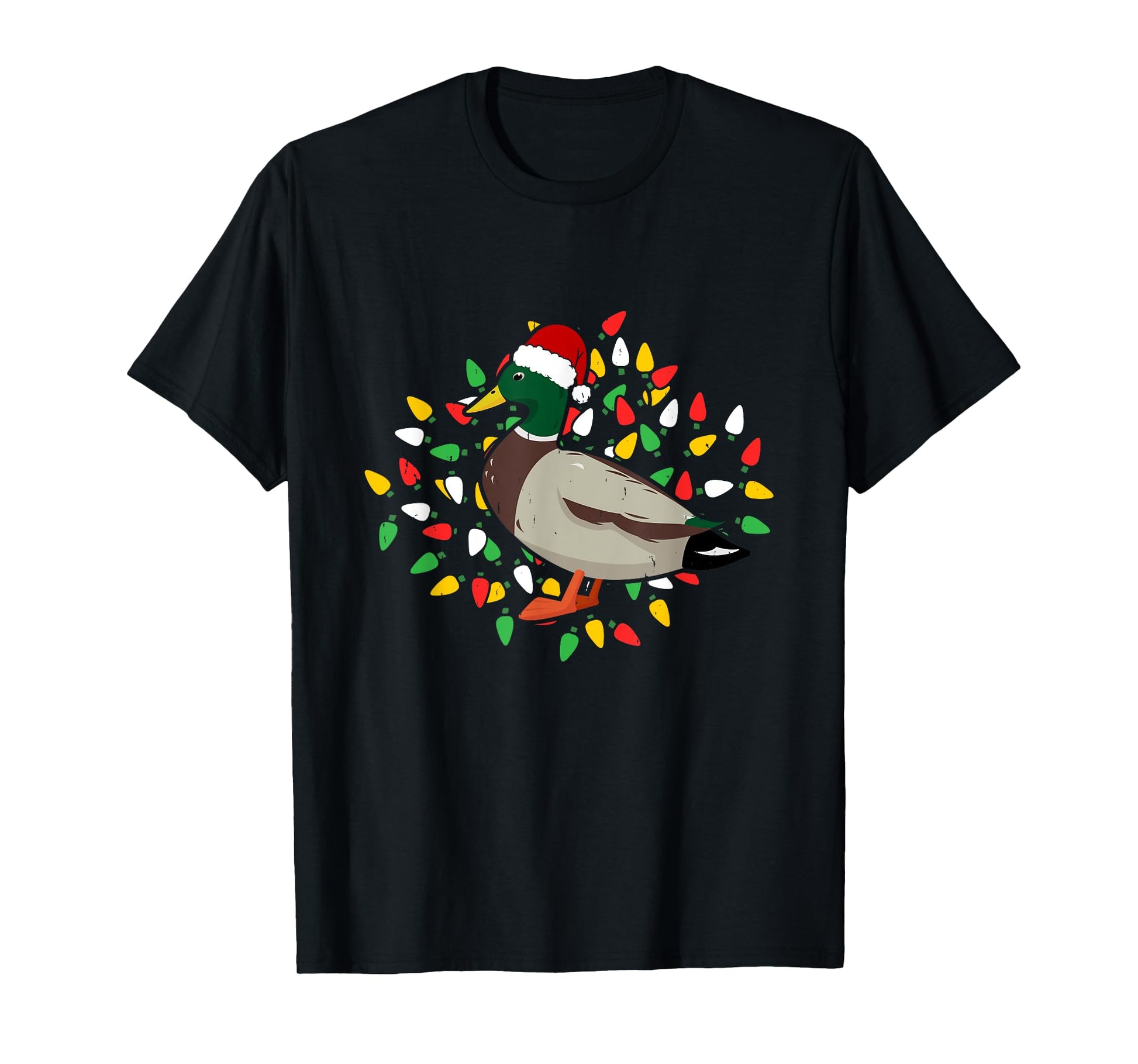 Holiday Xmas Lighting Santa Hat Mallard Duck Bird Christmas T-Shirt