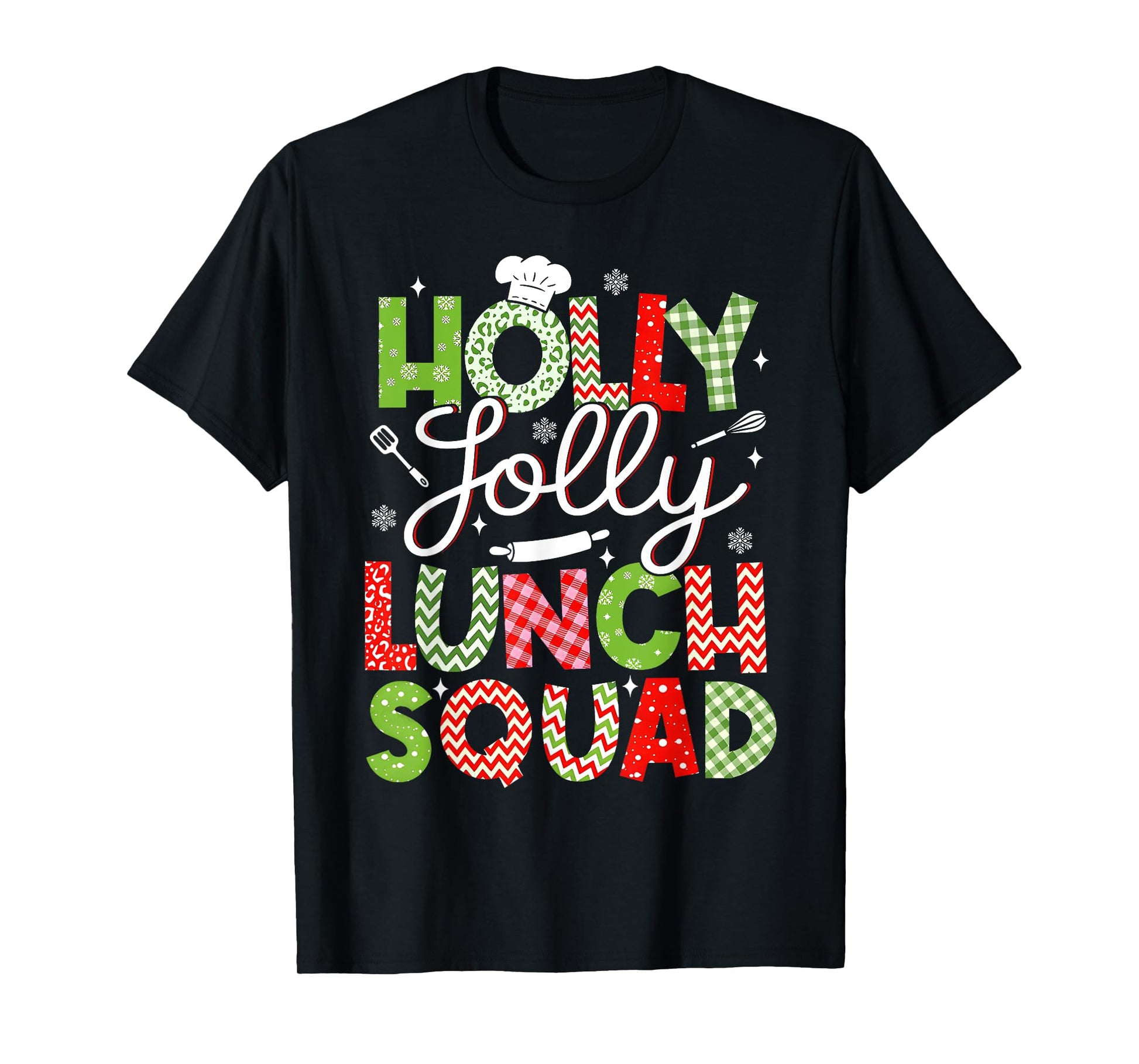 Holly Retro Jolly Lunch Squad Cafeteria Lunch Lady Christmas T-Shirt