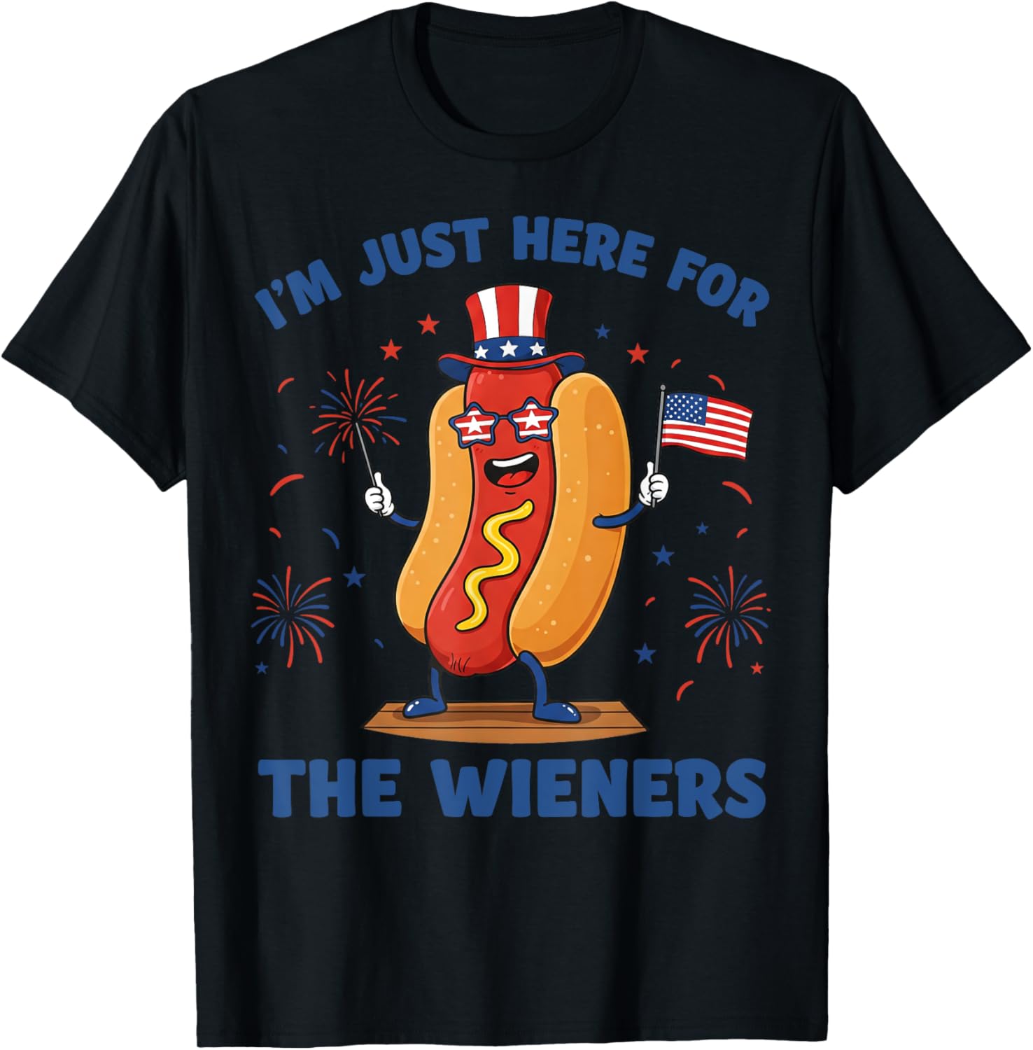 Funny Hot Dog 4th of July BBQ I'm Just Here For The Wieners T-Shirt