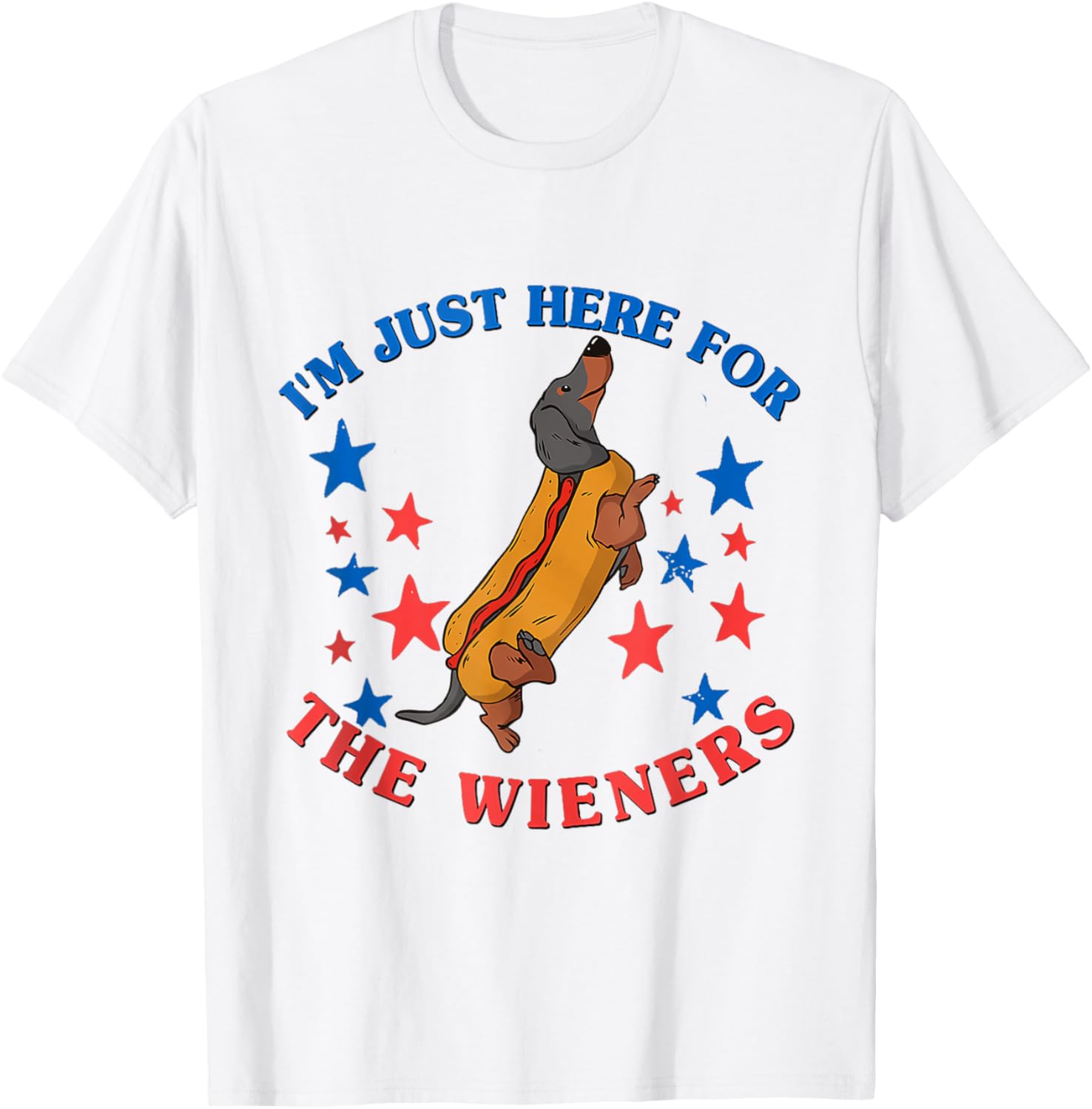 Hotdog Dachshund Hot Dog I'm Just Here For The Wieners Dog T-Shirt