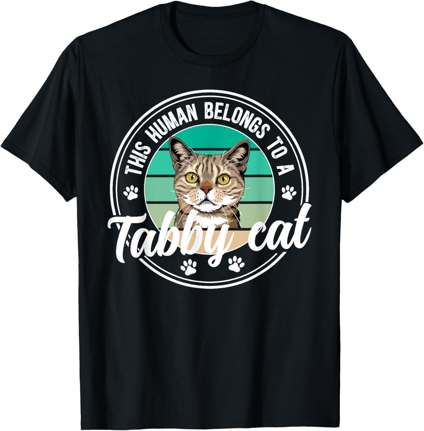 This Human Belongs To A Tabby Cat Owner Tabby Cat Lover T-Shirt