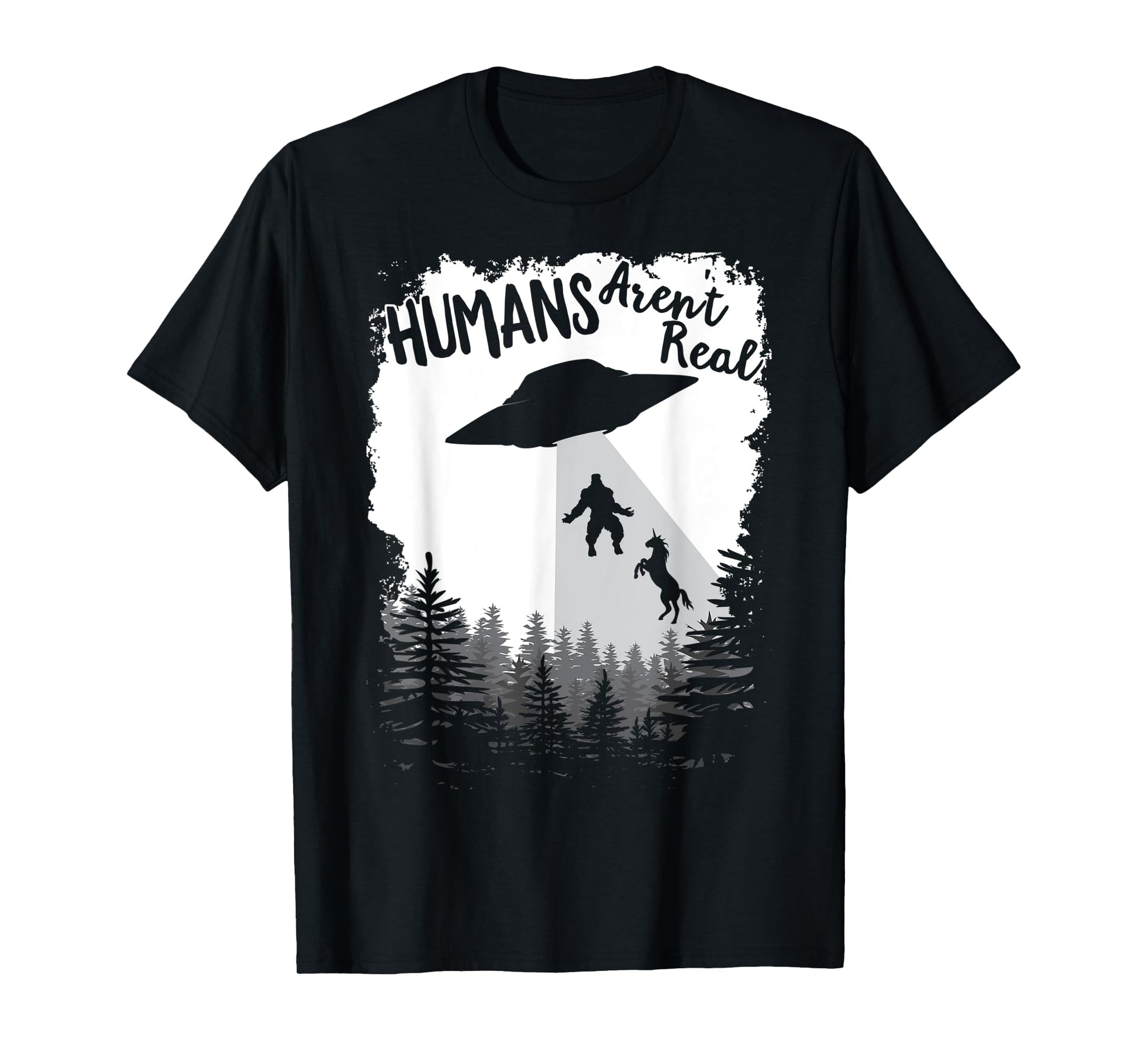 Humans Aren't Real Bigfoot Unicorn Alien UFO Flying Object T-Shirt