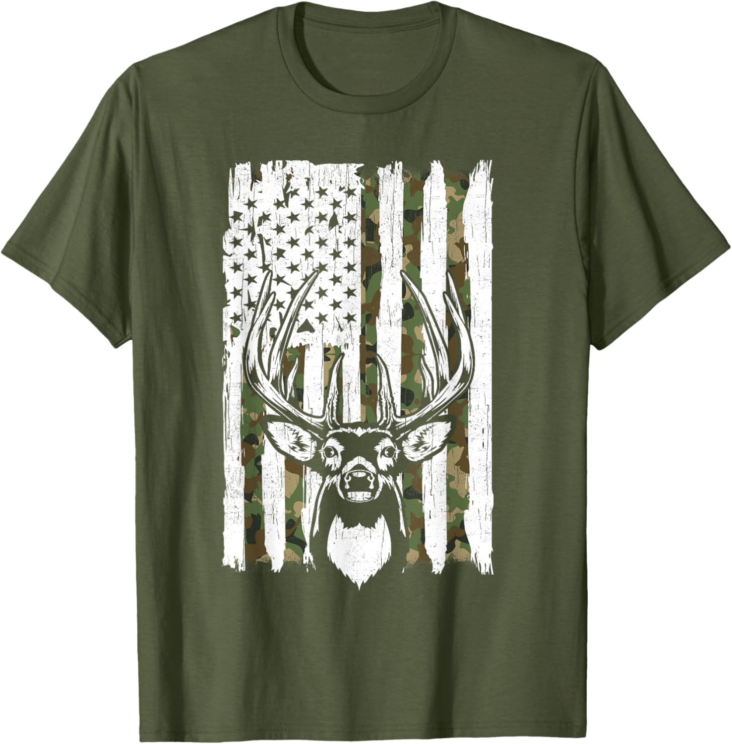 American Flag Elk Deer Hunting Dad Father Day Gift From Son T-Shirt