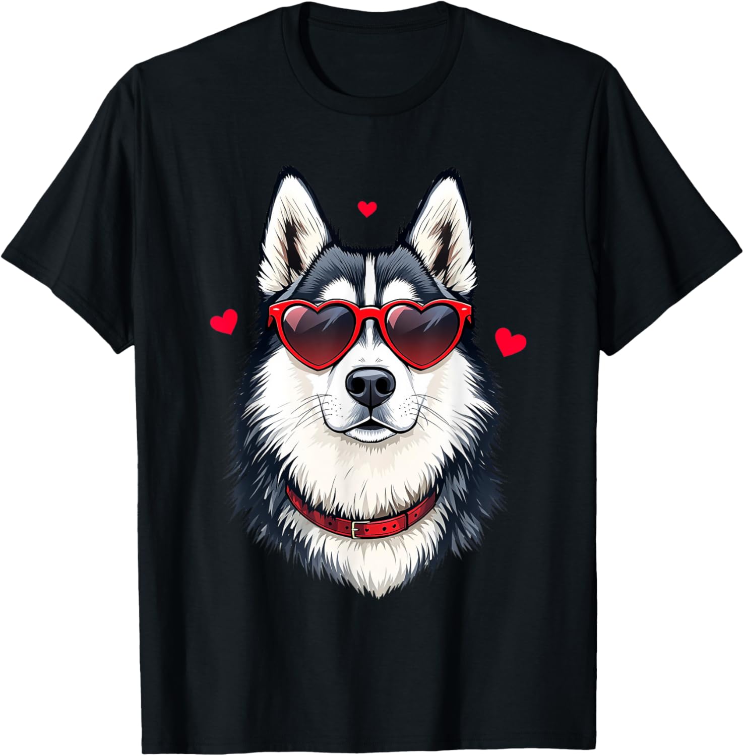 Husky Dog Heart Glasses Cute Valentine’s Day T-Shirt