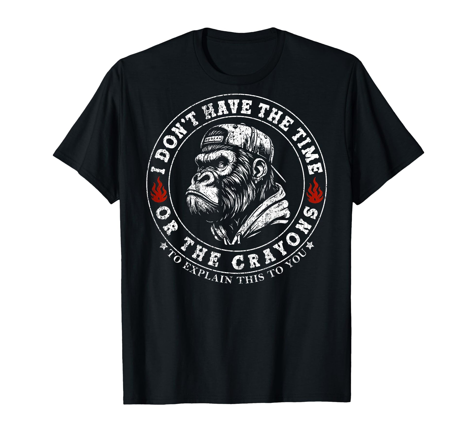 I Don't Have The Time Or The Crayons Funny Monkey (On Back) T-Shirt