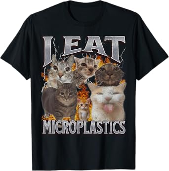 I Eat Microplastics Funny Cat Meme Bootleg Graphic T-Shirt for Men Women