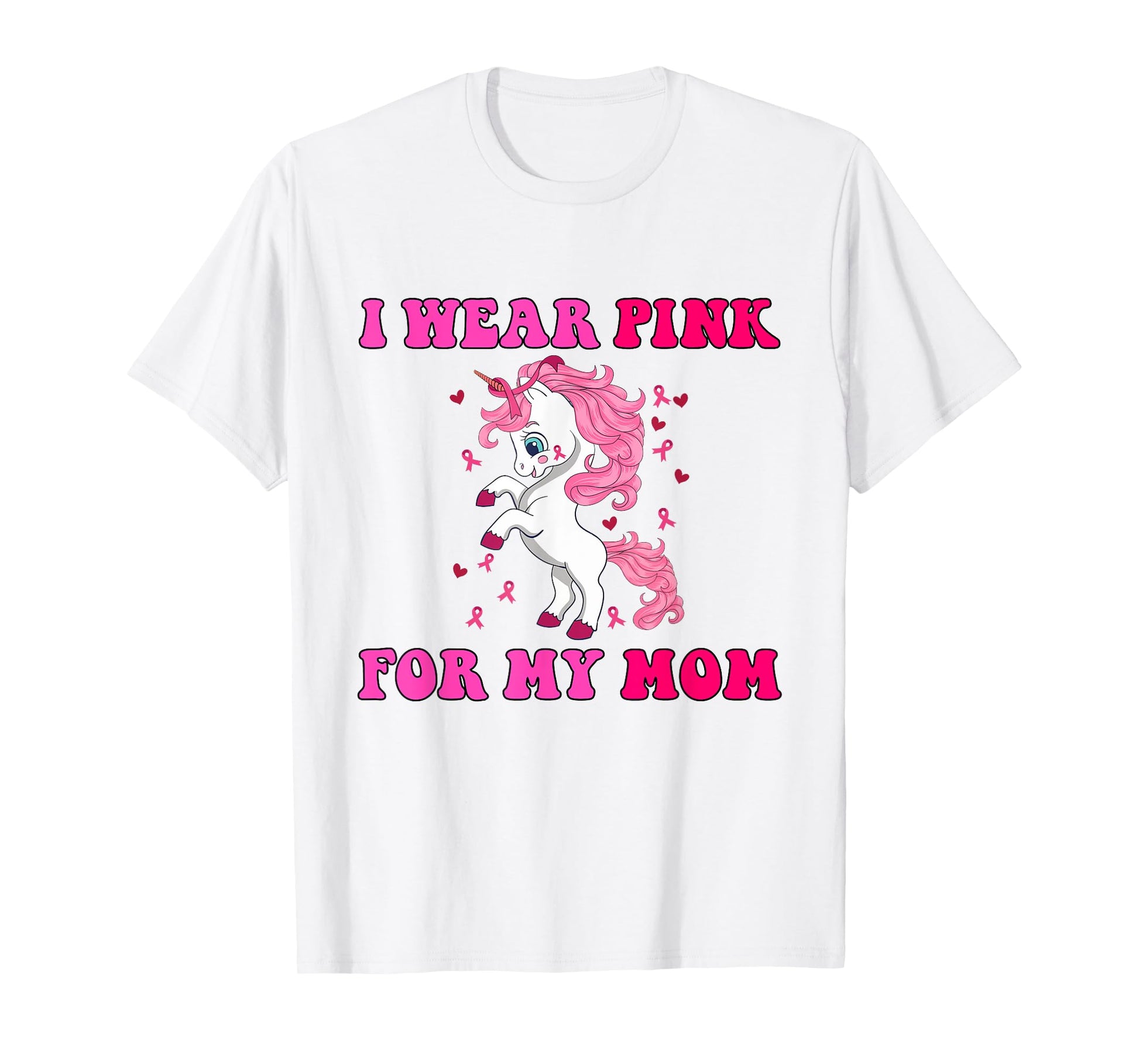 I Wear Pink For My Mom Fun Unicorn Breast Cancer Awareness T-Shirt
