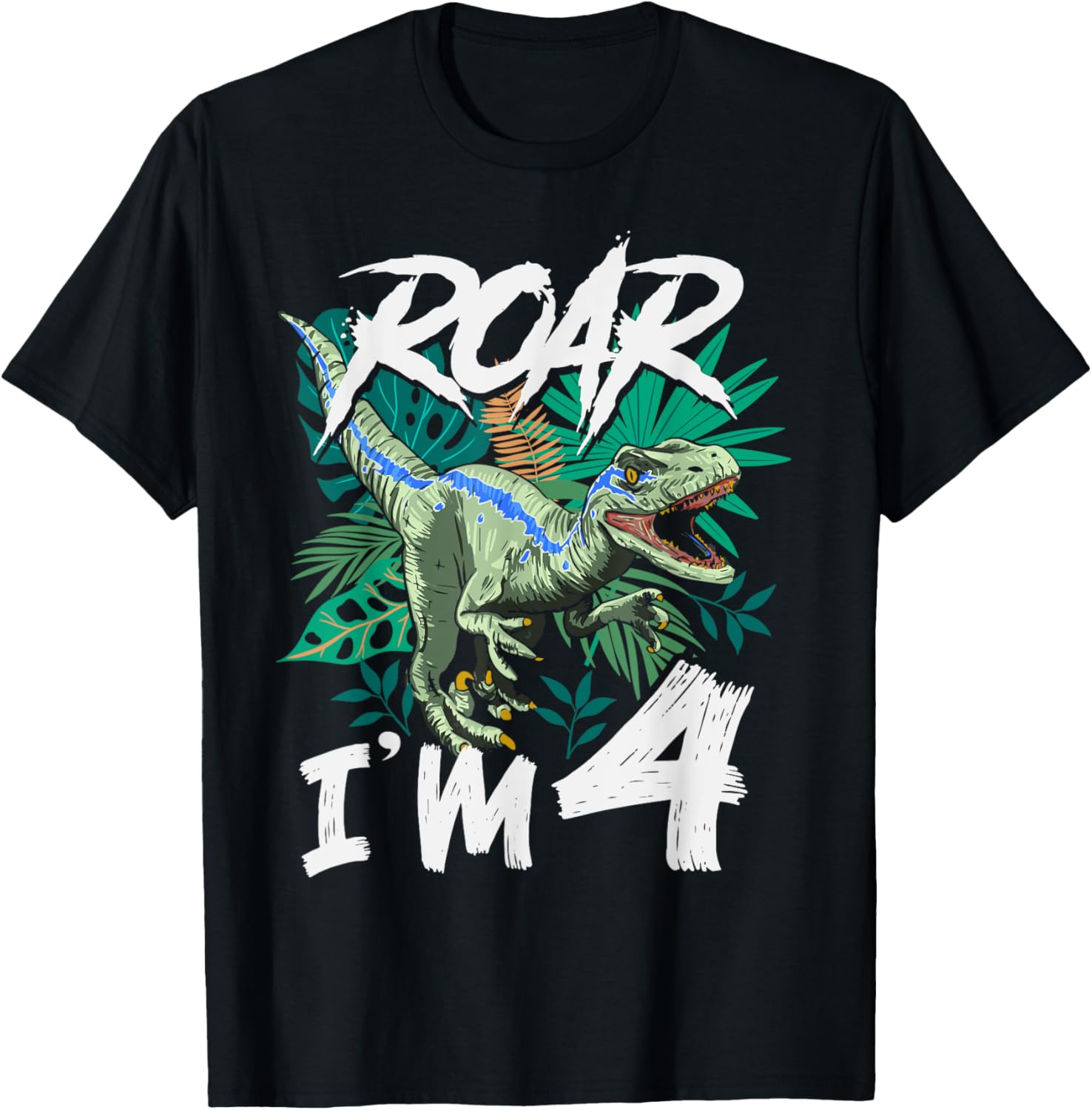 I'm 4 Birthday Shirt For Boys Roar Im 4 Dinosaur Party Girls T-Shirt