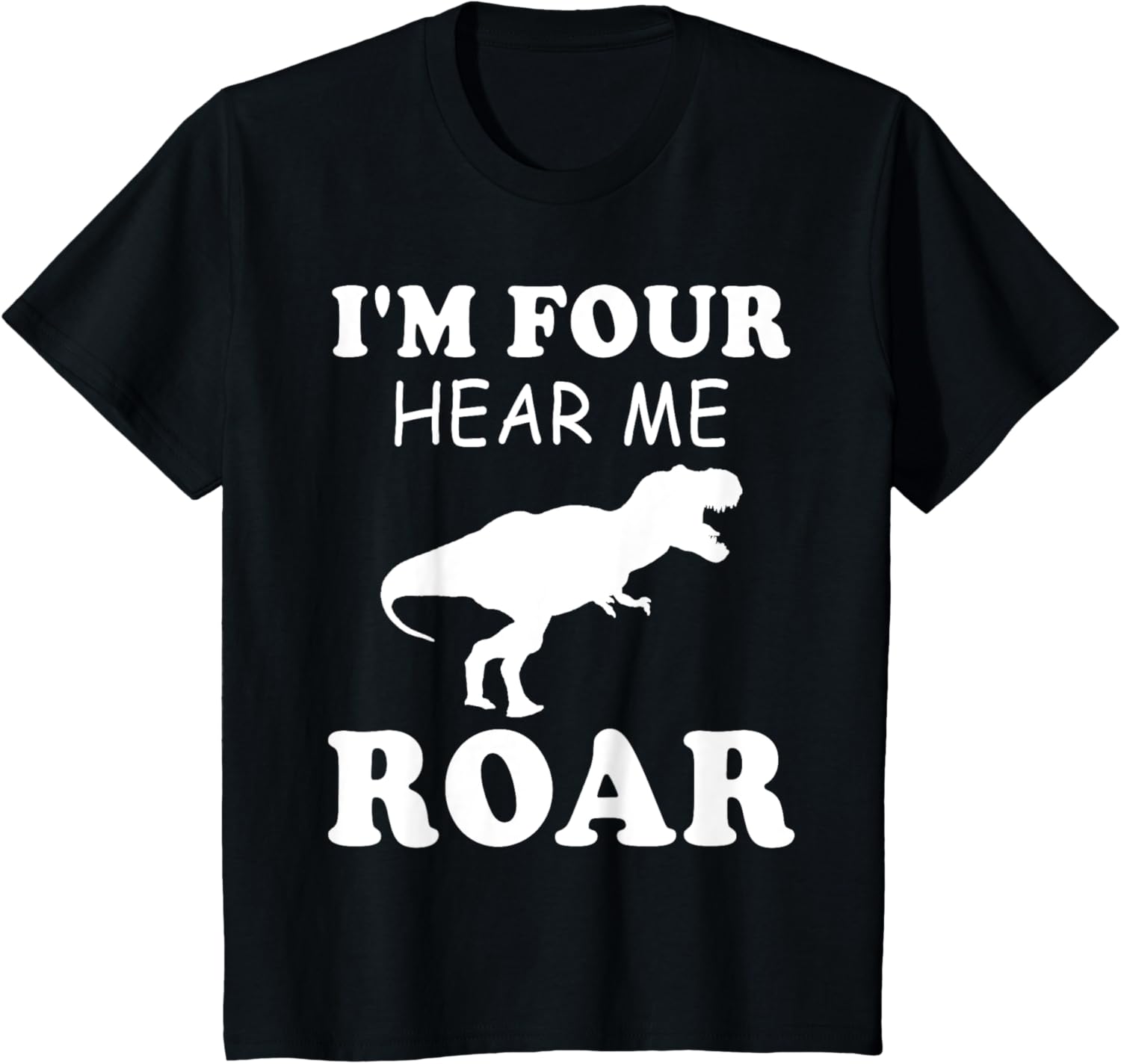 I'm Four Hear Me Roar 4th Birthday Dinosaur T-Shirt